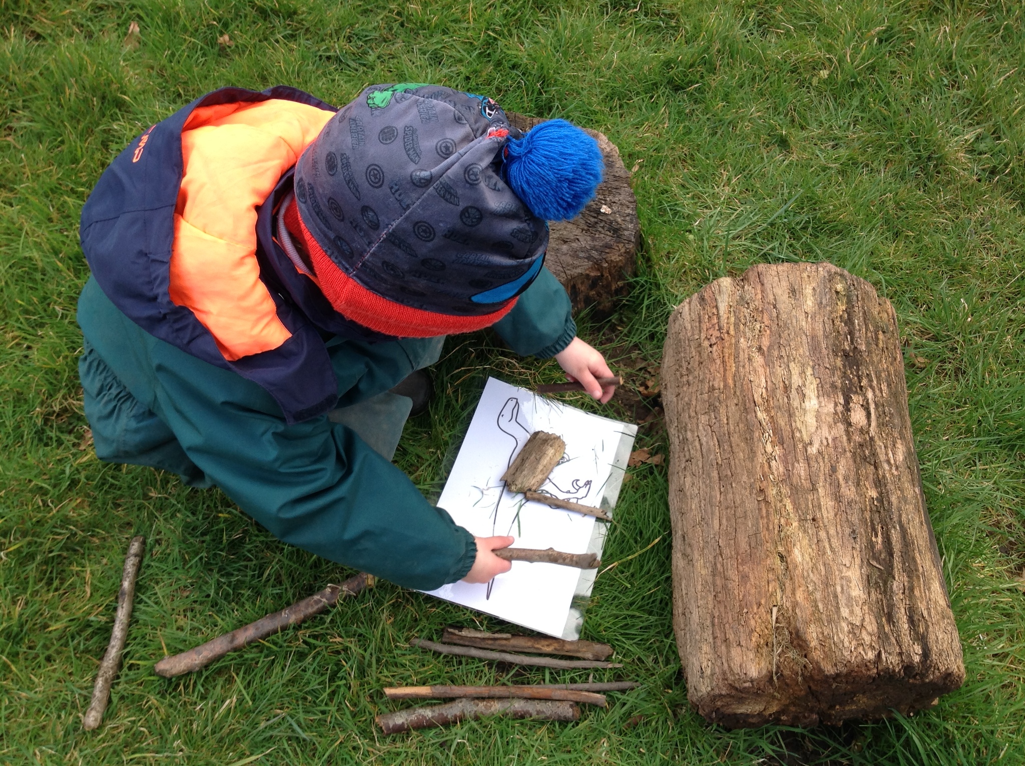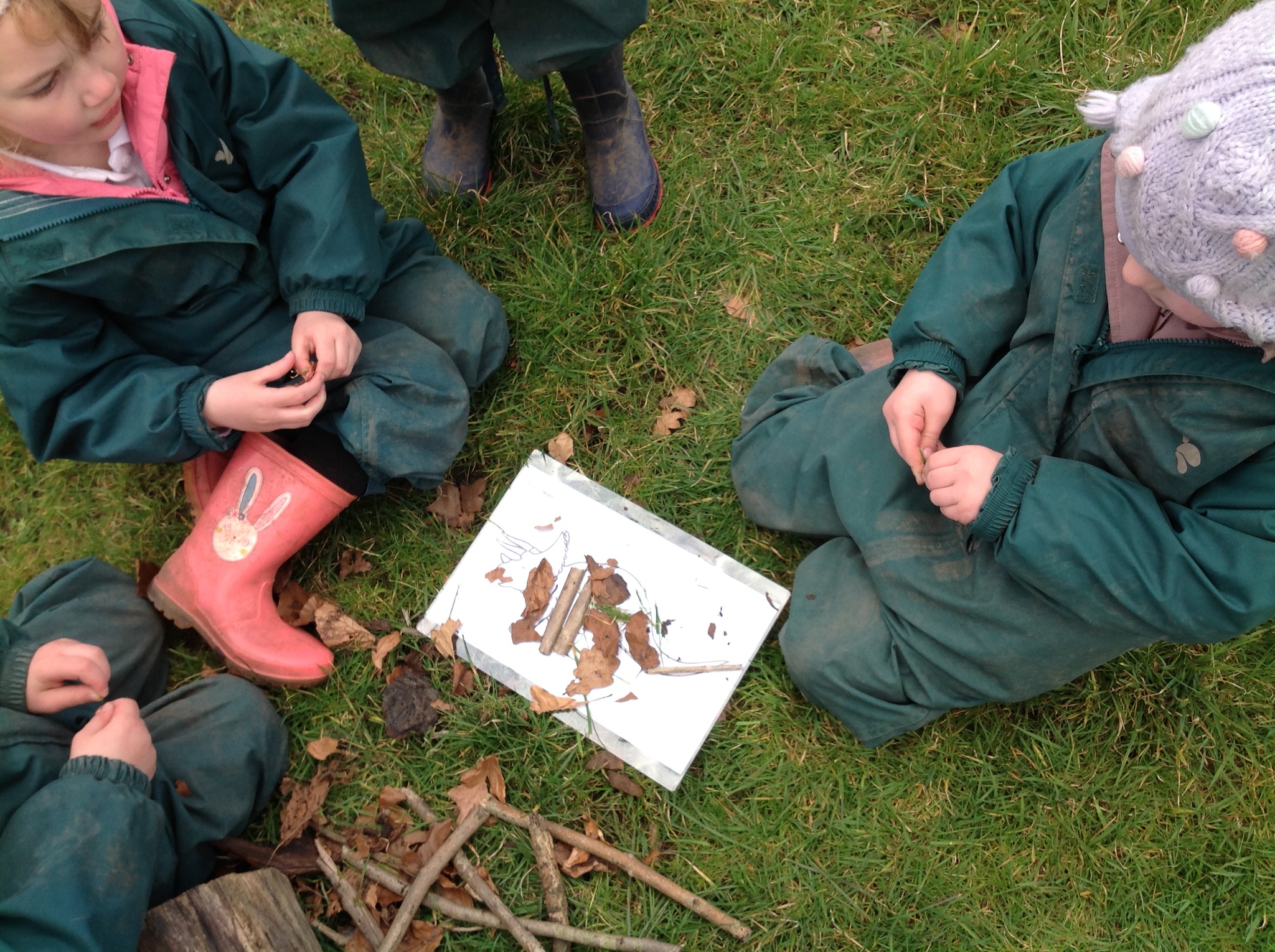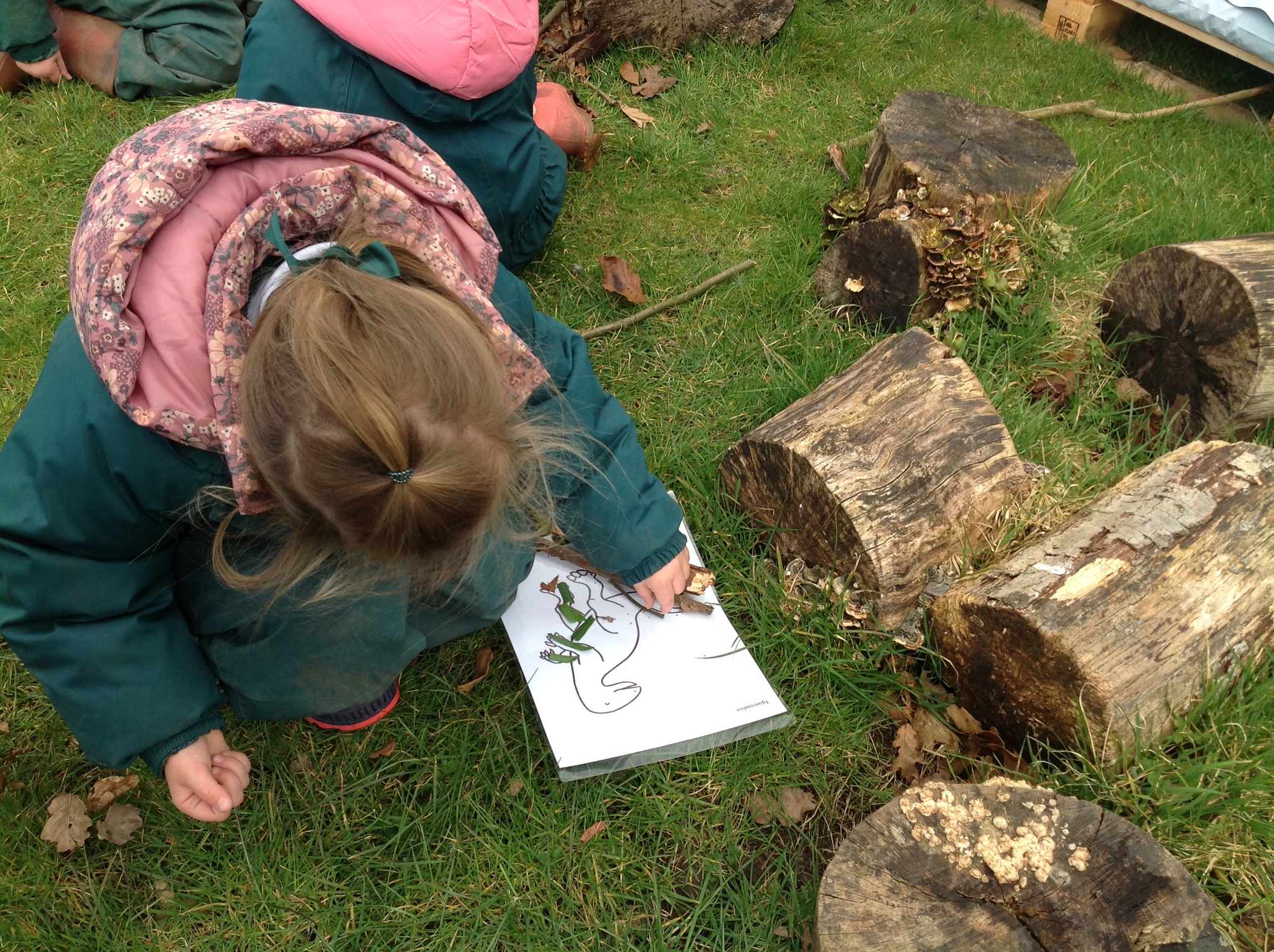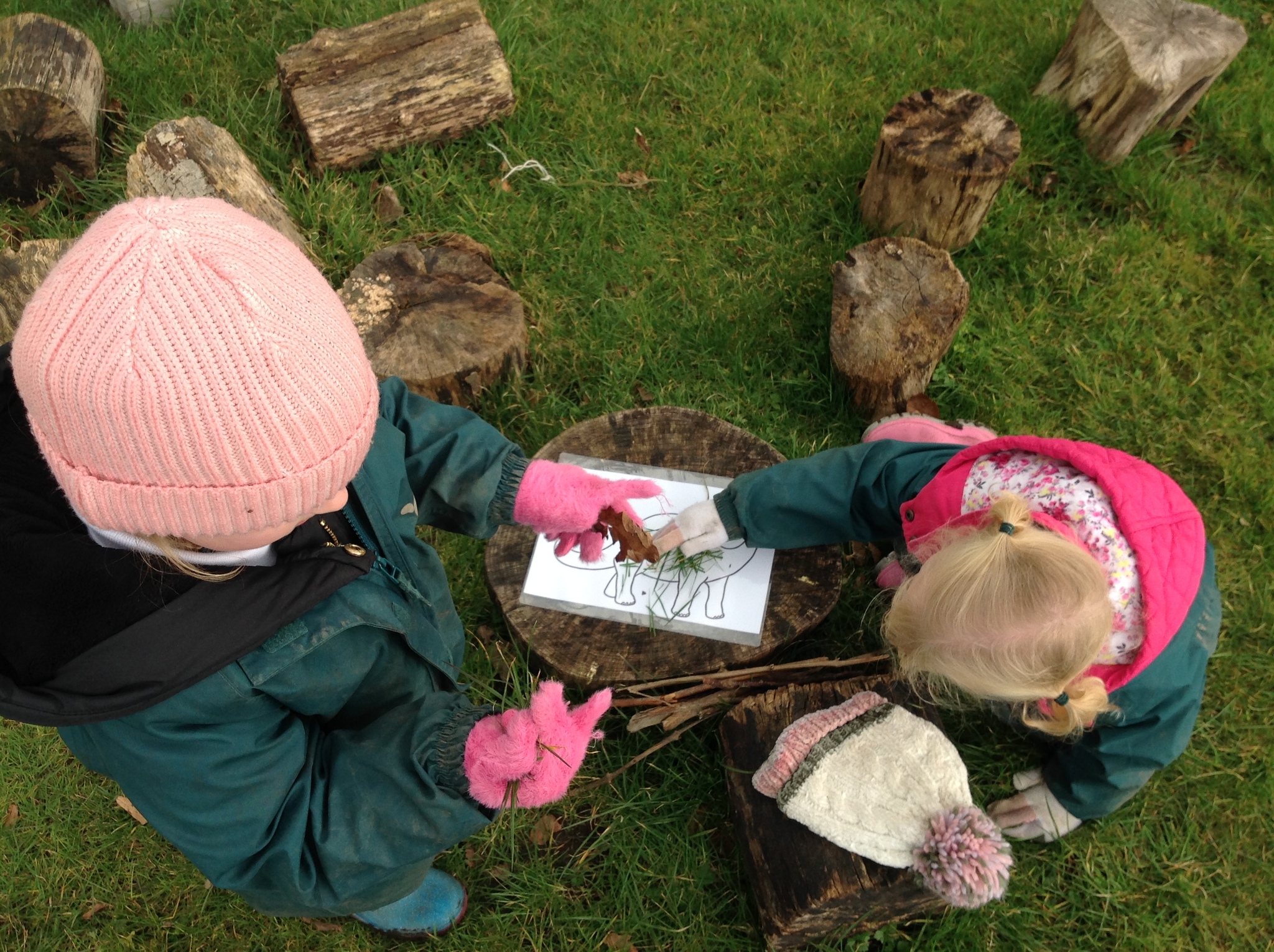 In Forest School, they had great fun using nature to decorate a dinosaur, carefully selecting leaves, twigs, and other natural materials to create wonderful designs. It was fantastic to see their creativity in action!