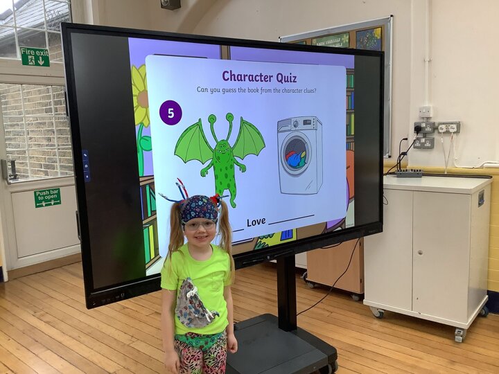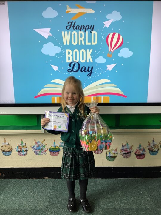 Today, our Year 2 competition winner was presented with an Easter basket and a certificate from Teaching personnel because of her amazing effort on World Book Day. She came dressed as Alien's Love Underpants and although mum said that she helped with the costume, the design and planning was all her idea. We think it is so clever and creative, well done!