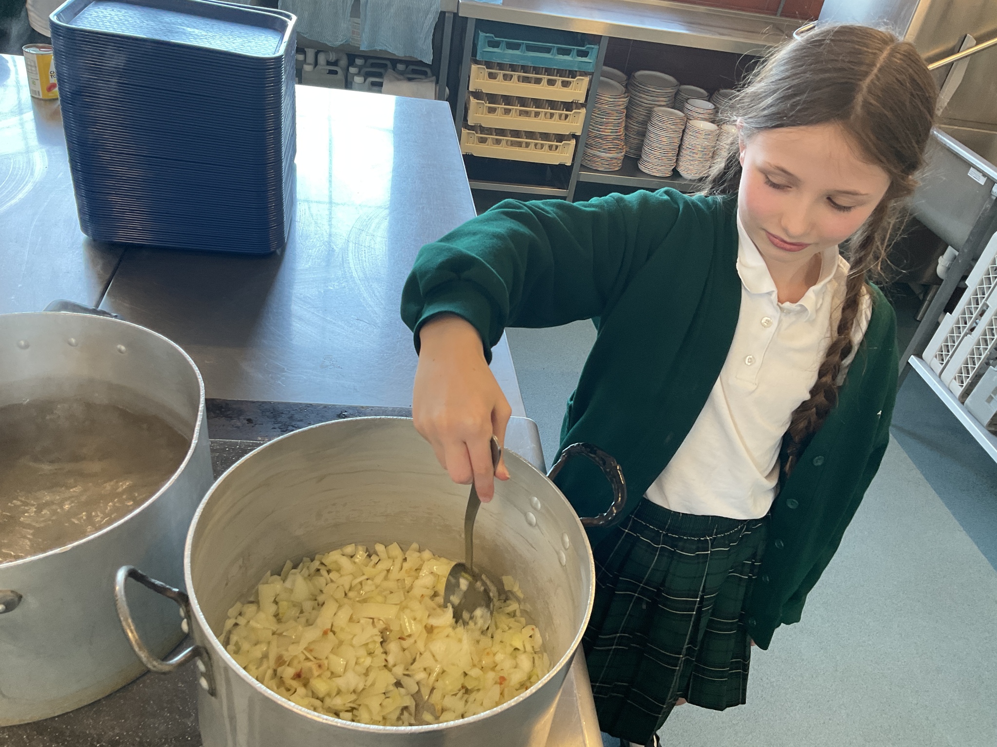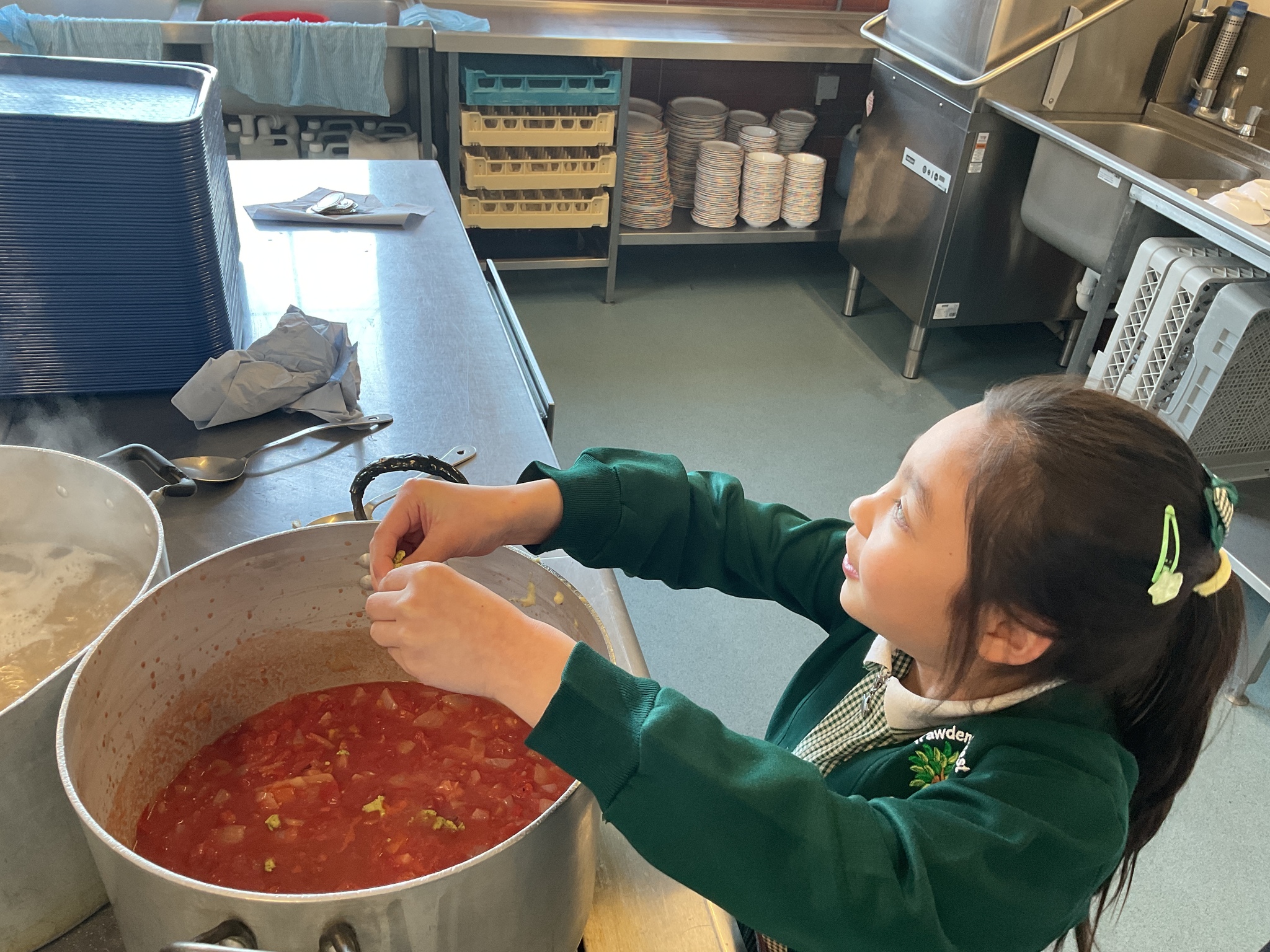 Each child took on a unique and important role in the kitchen: from chopping onions and ripping fresh basil, to carefully stirring the pot and adding the finishing touches of grated cheese! It was a wonderful opportunity for them to learn teamwork, develop new skills, and most importantly, enjoy the fruits of their labour!