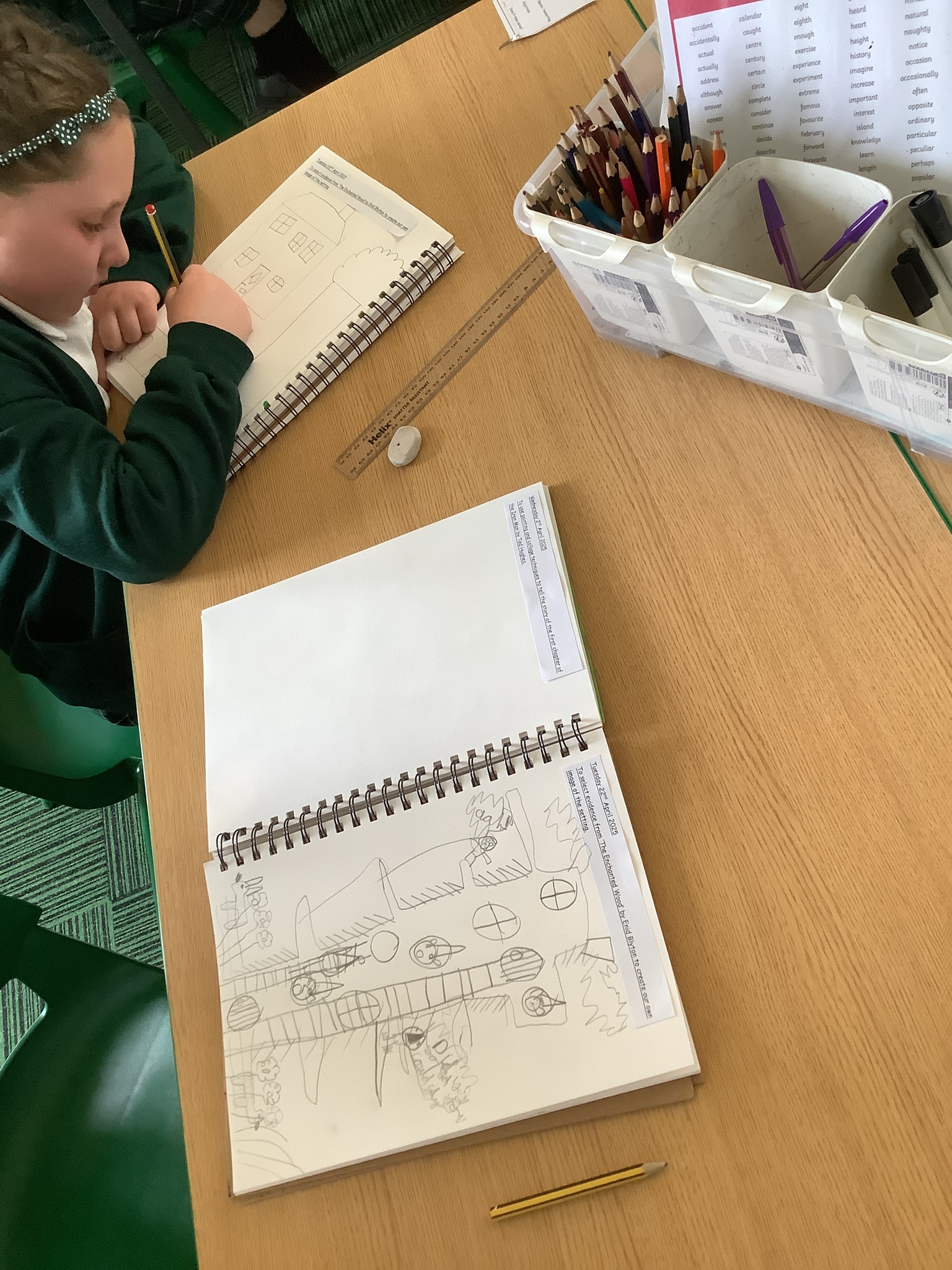 The classroom looked a little different when we came back after the Easter holidays... It was full of leaves, fallen fruit, minibeasts and there were even some tiny fairies hiding around the room. The children worked very hard examining the strange objects to try and work out where our new story was set, and they used their creativity and imagination to design an image of what they thought the Enchanted Wood may look like. They were very excited to begin reading the story to find out if their predictions were correct!