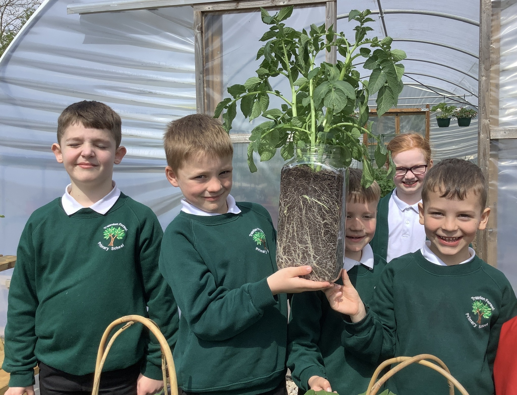 Over the Easter holidays, our class competition potatoes have been thriving, with impressive growth in all tubs.