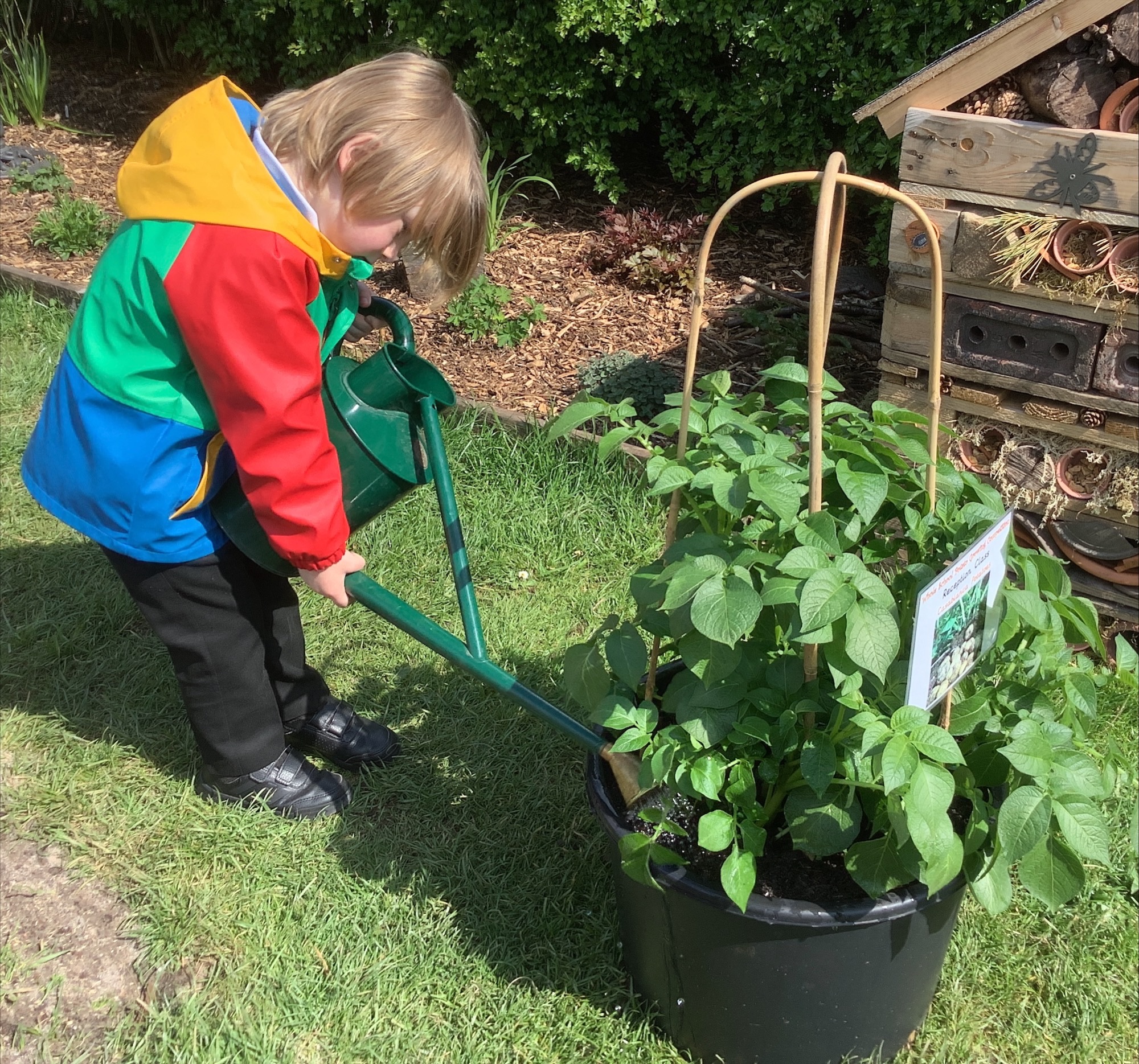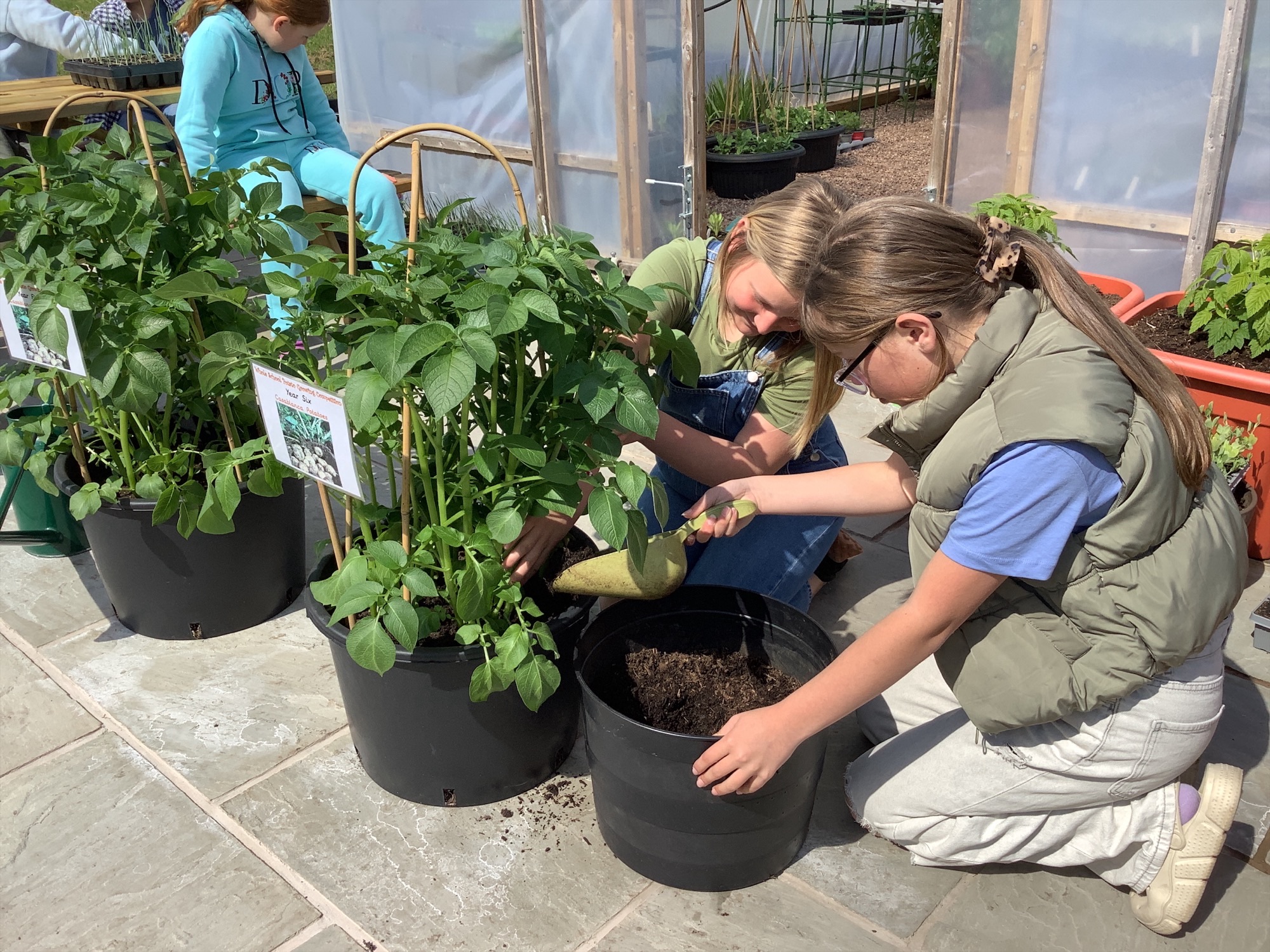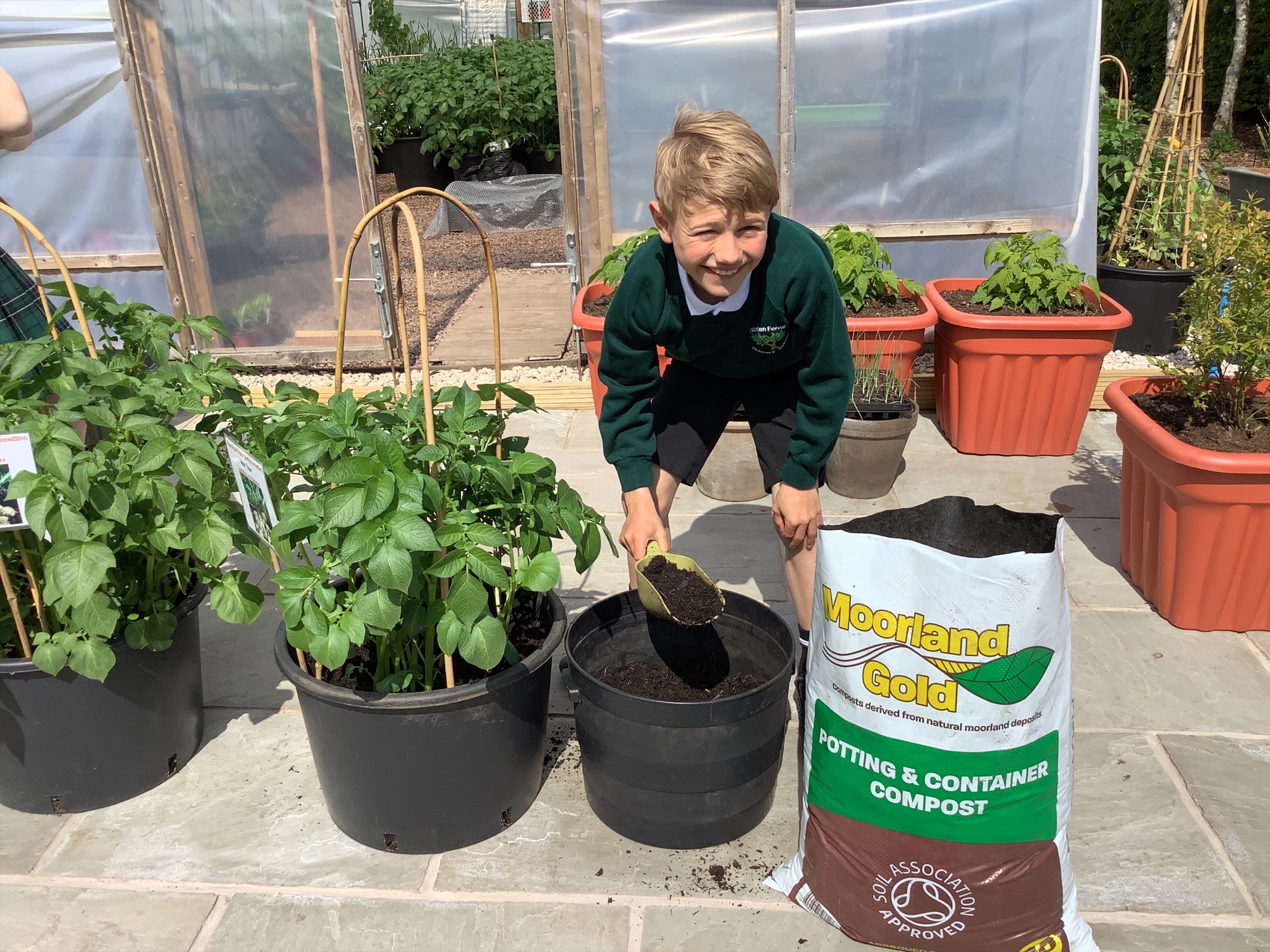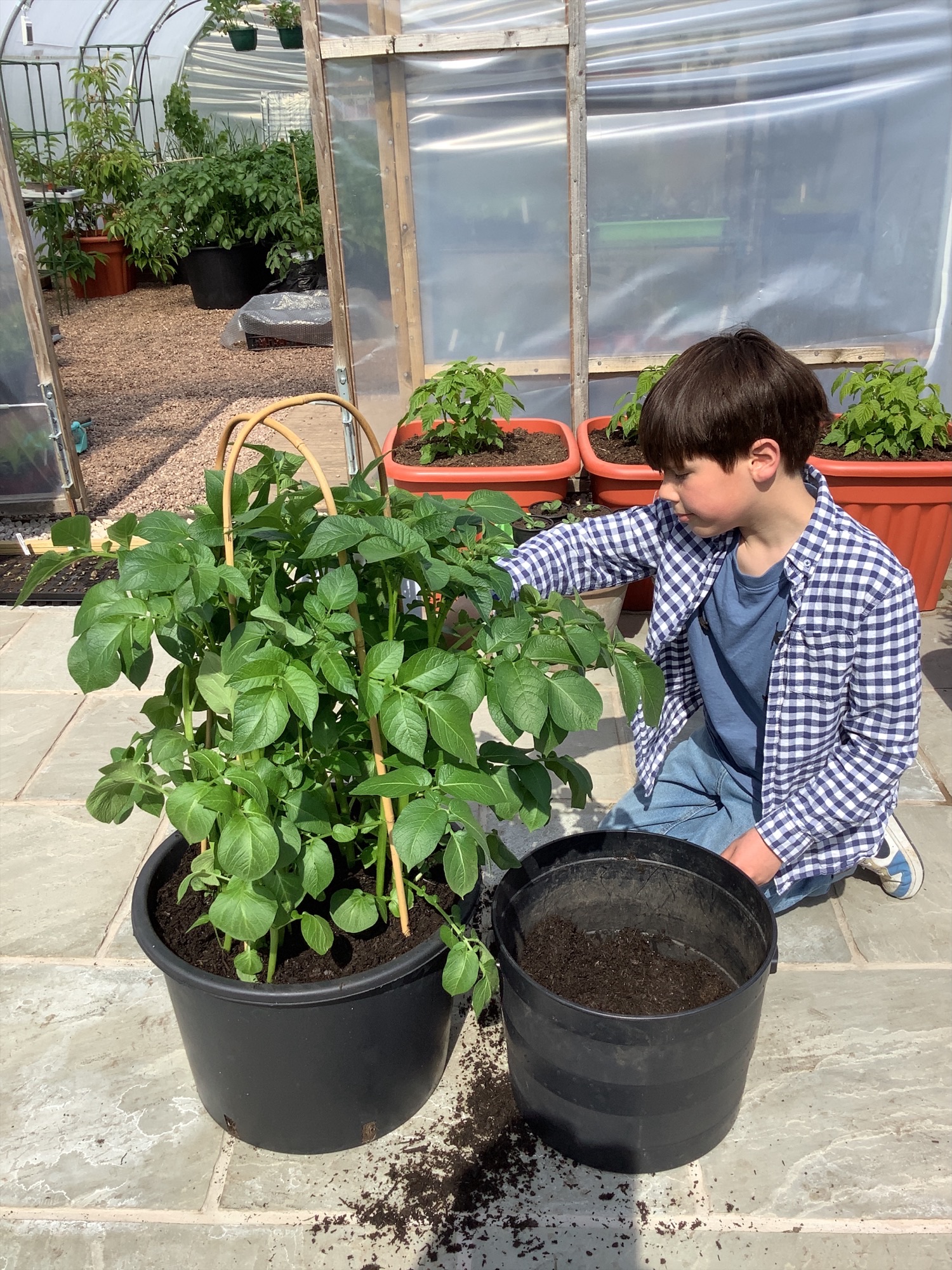 As part of the next stage in the growing process, representatives from every class gathered last week to carefully earth up their potato plants and give them a thorough watering.