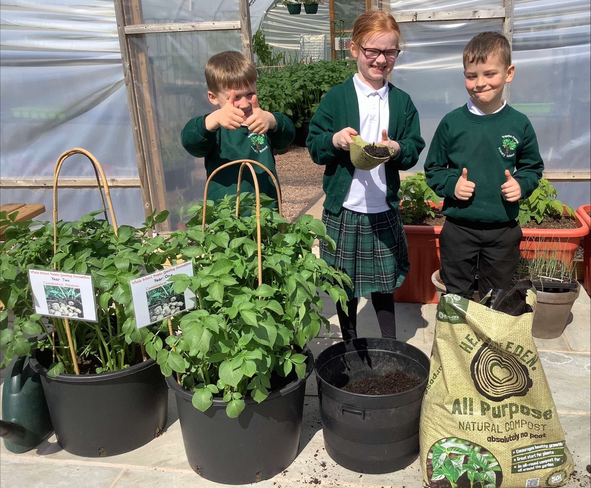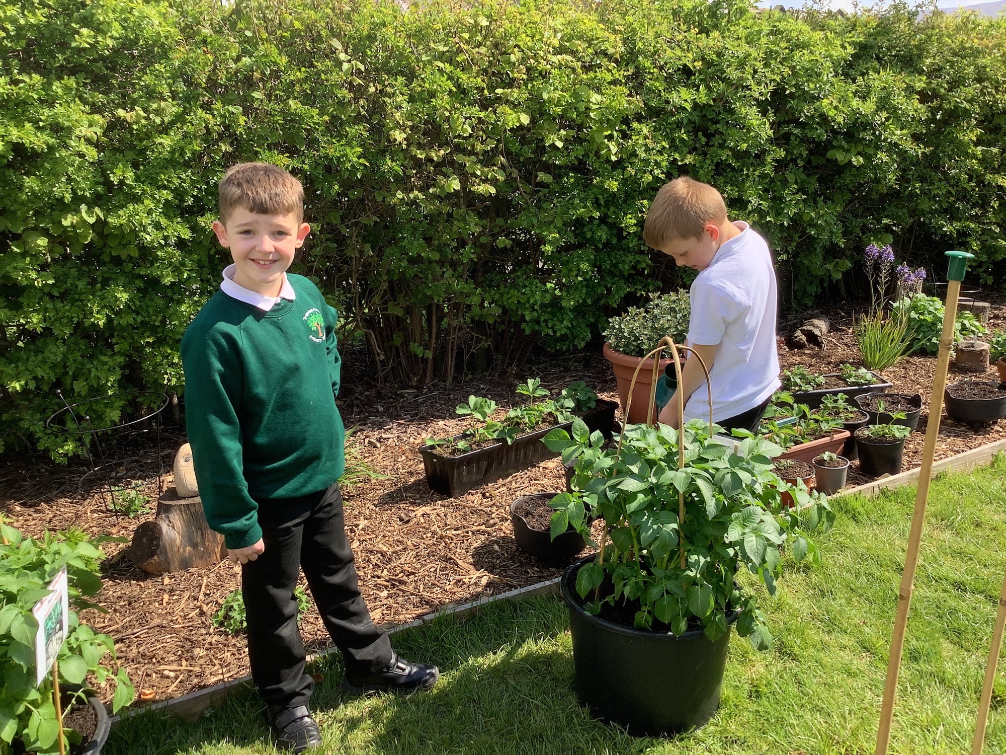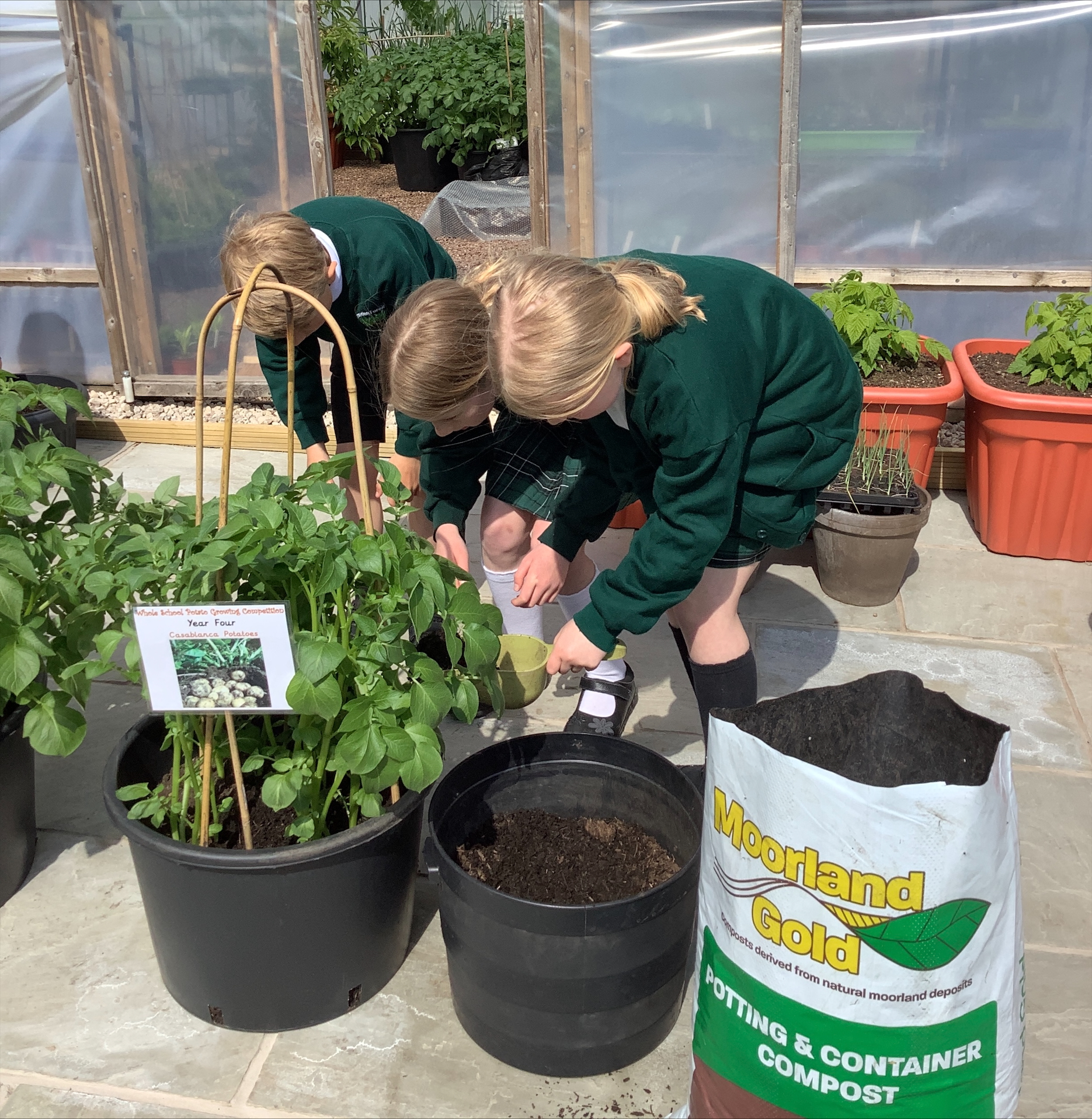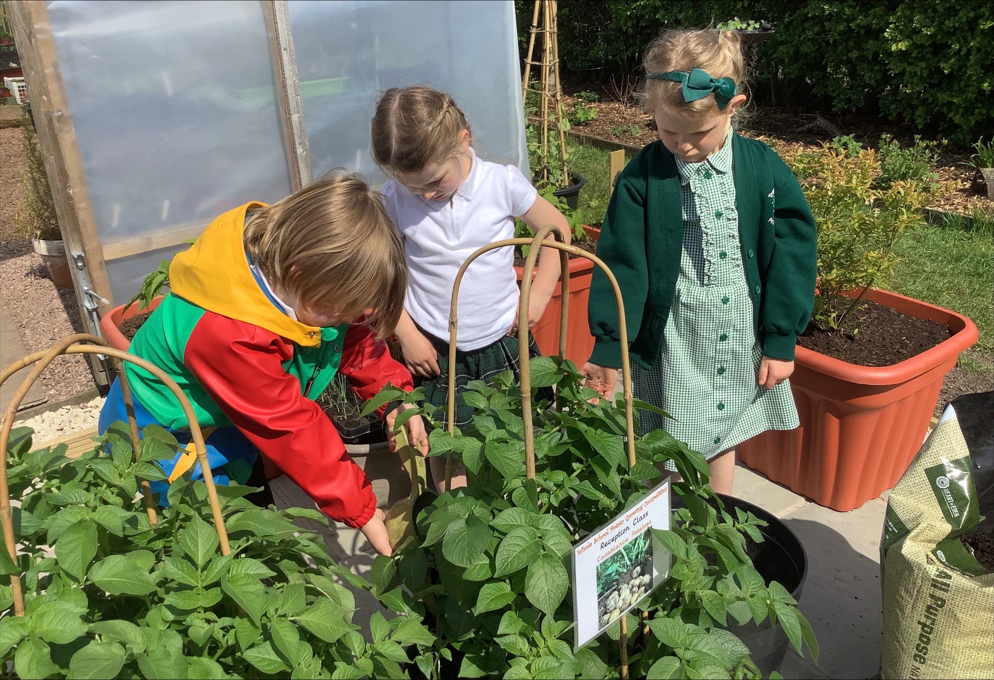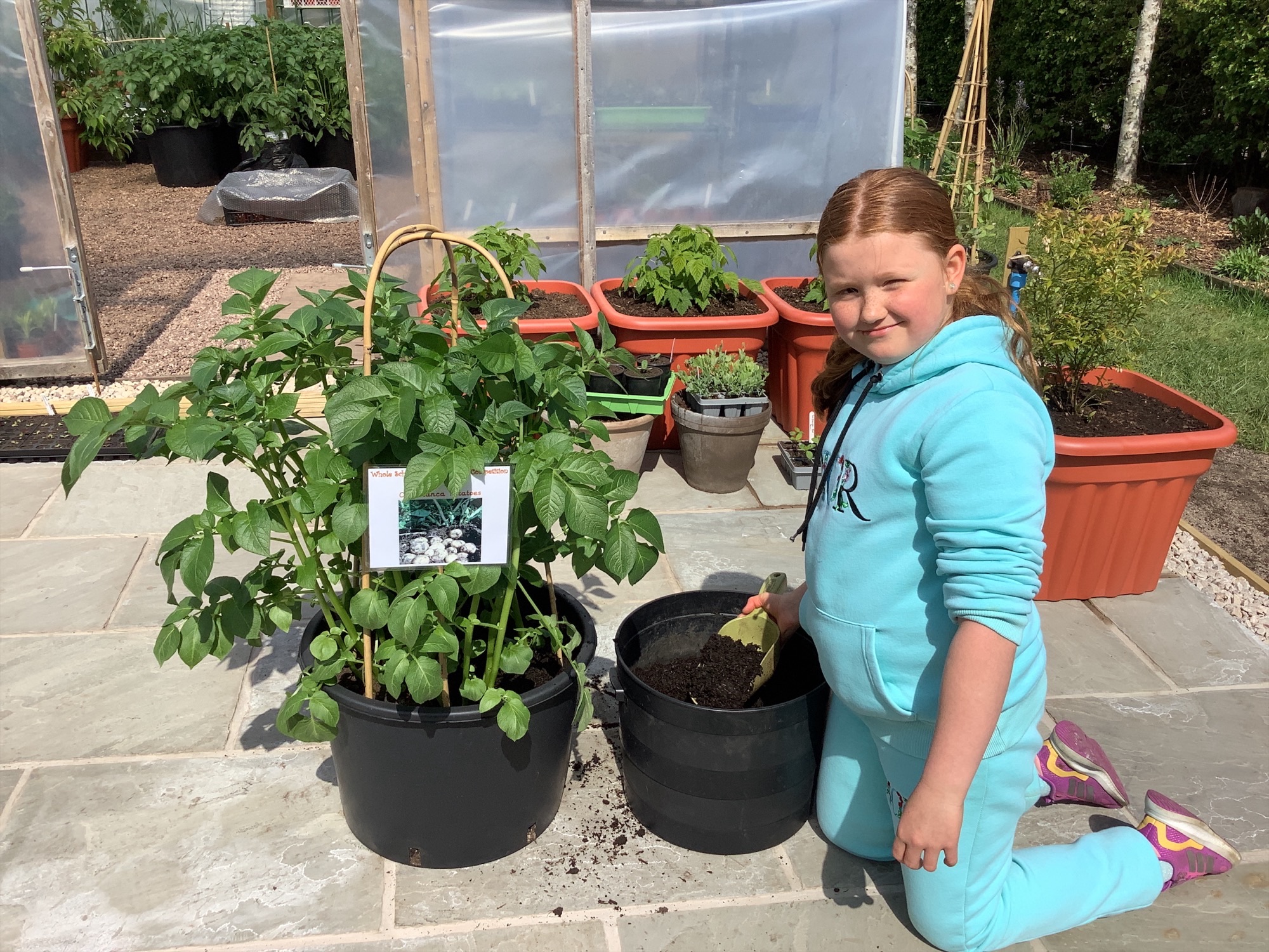 As part of the next stage in the growing process, representatives from every class gathered last week to carefully earth up their potato plants and give them a thorough watering.