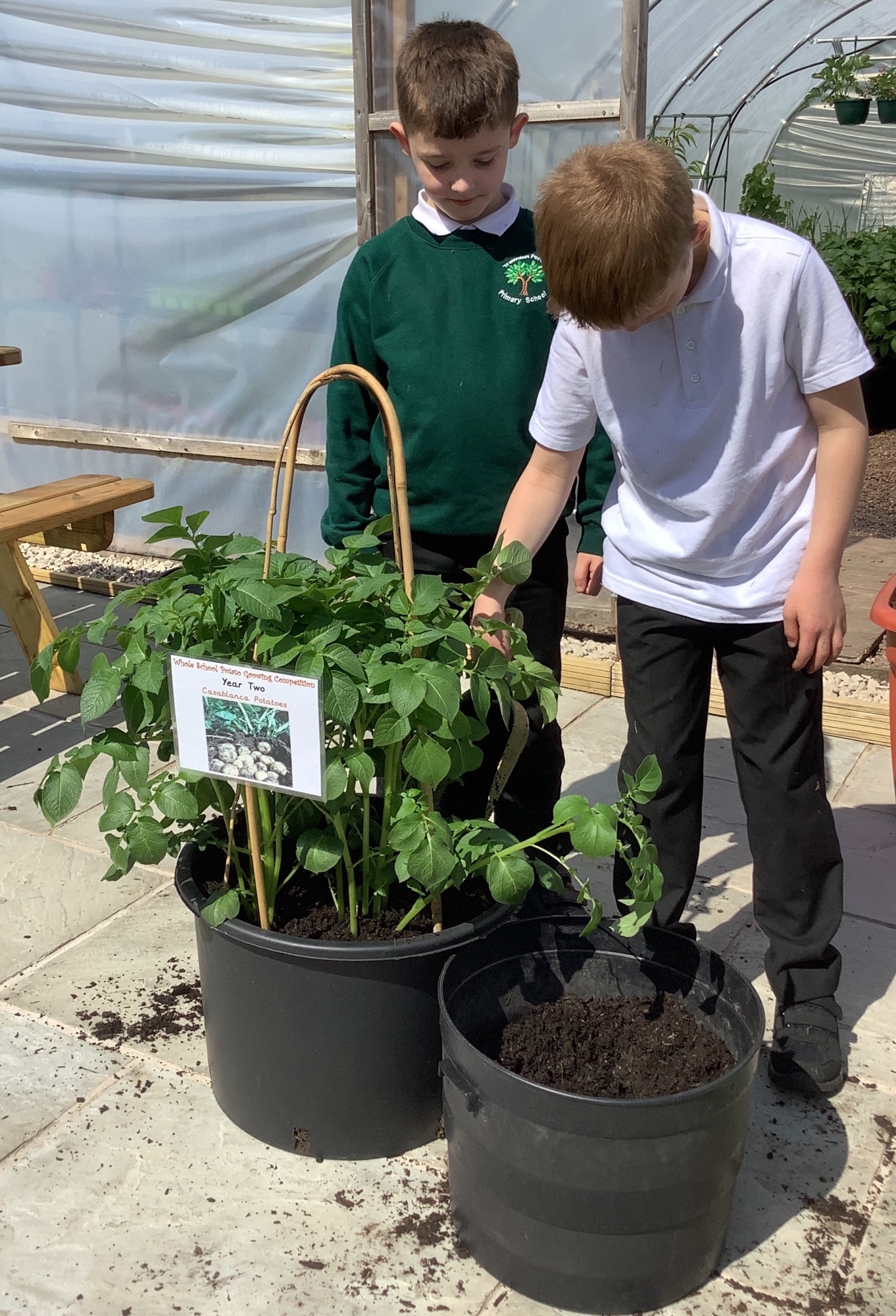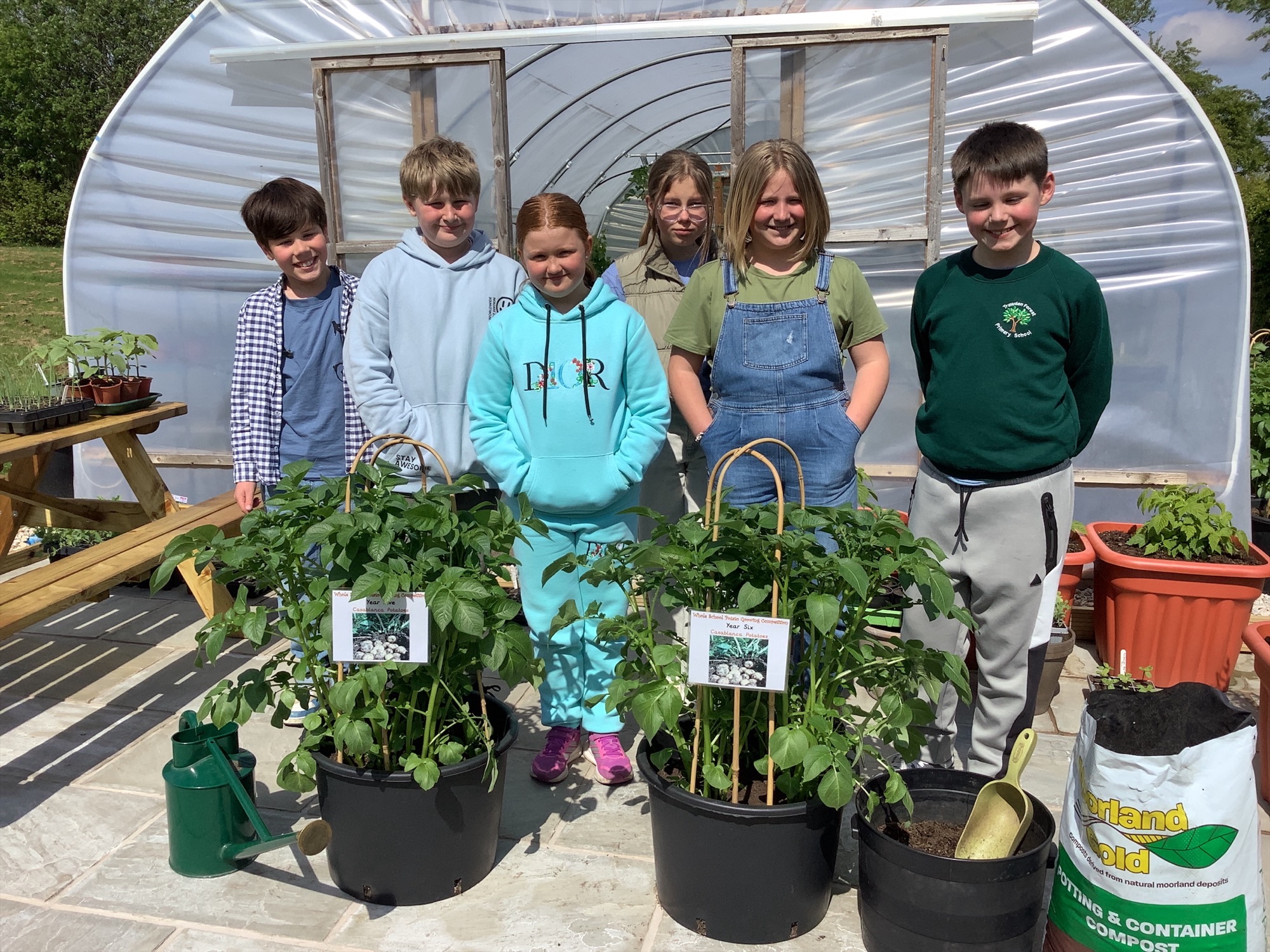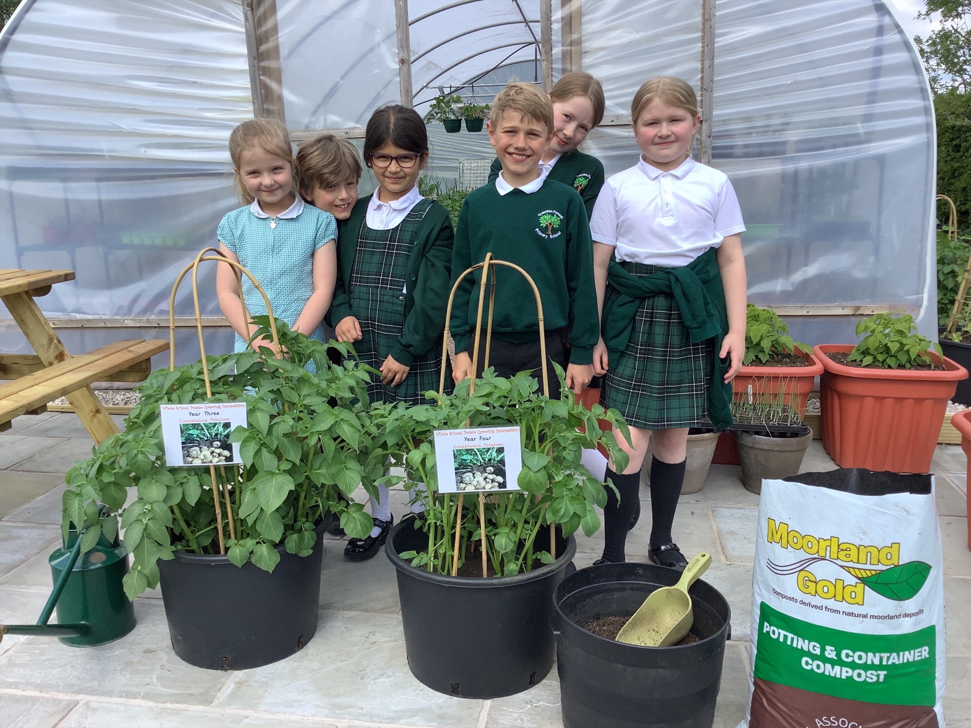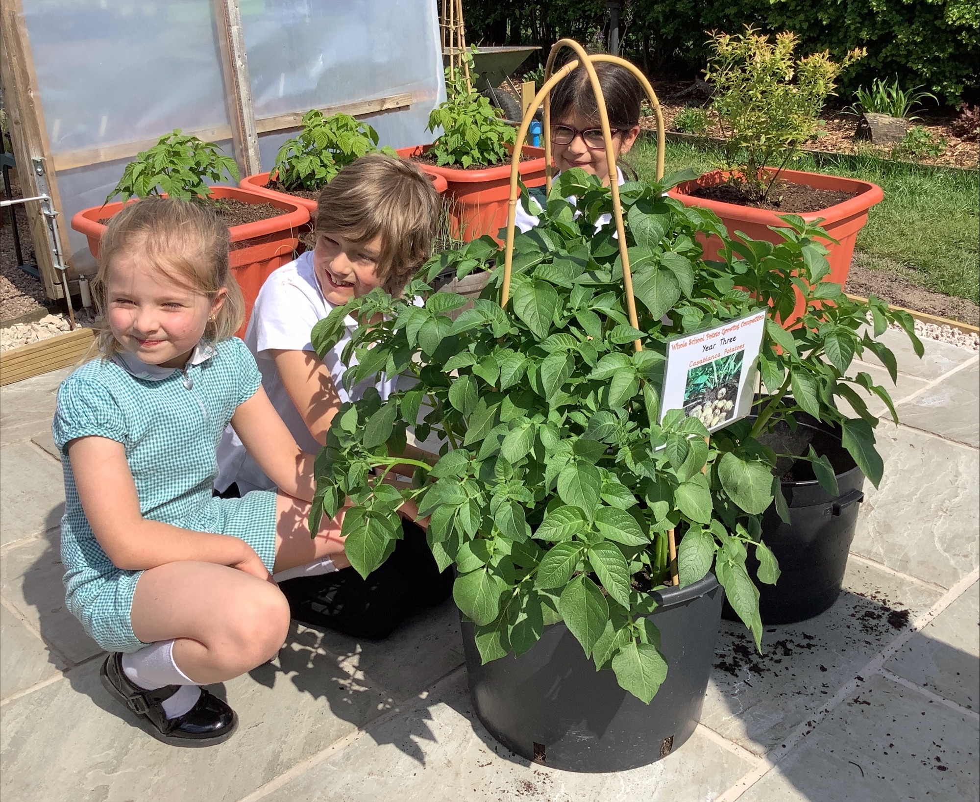 As part of the next stage in the growing process, representatives from every class gathered last week to carefully earth up their potato plants and give them a thorough watering.