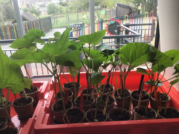 8 May 2025 Our beans have really started to shoot up. Won't be long before we will have to climb to see the tops! beanstalks Science English Class of 2030
