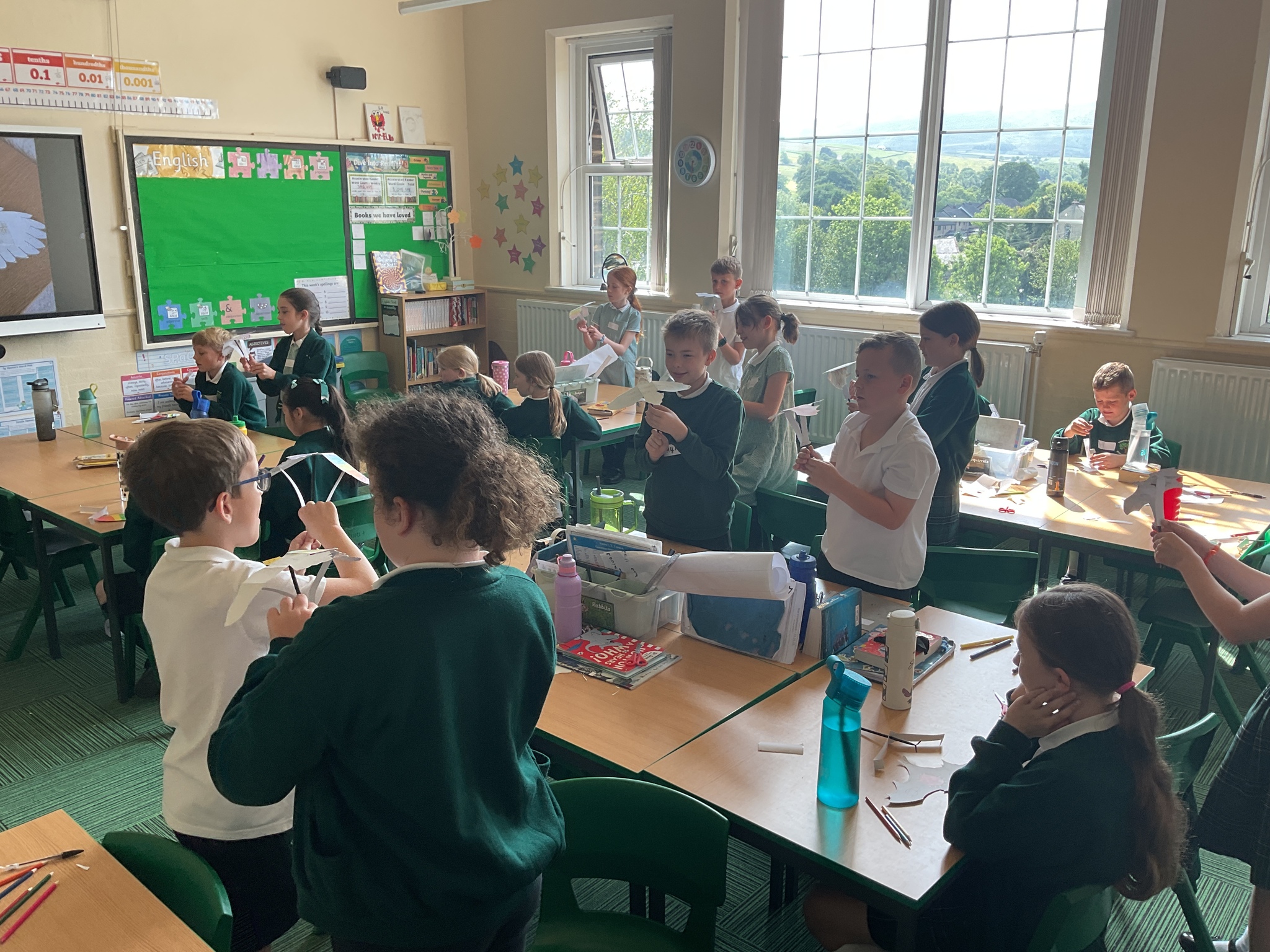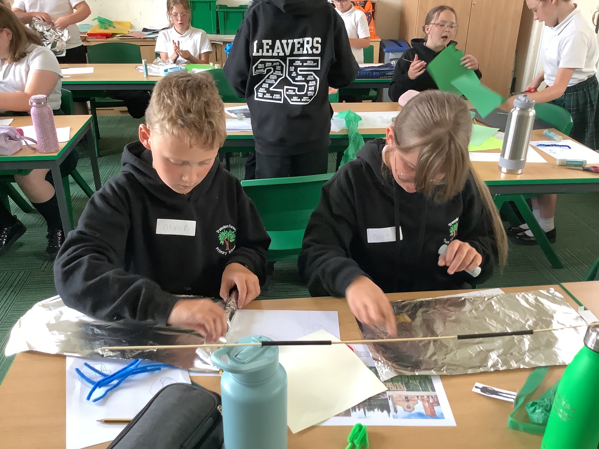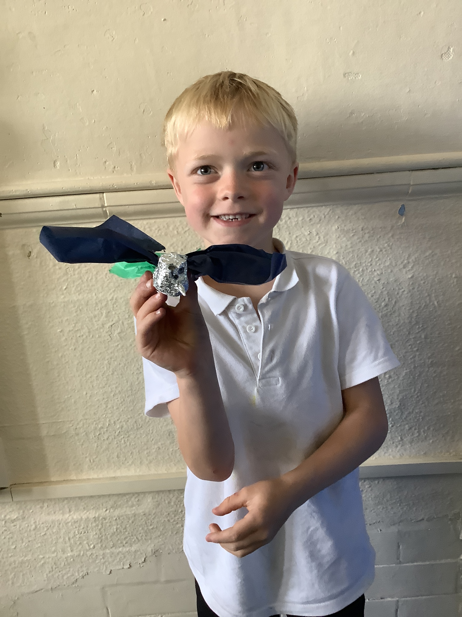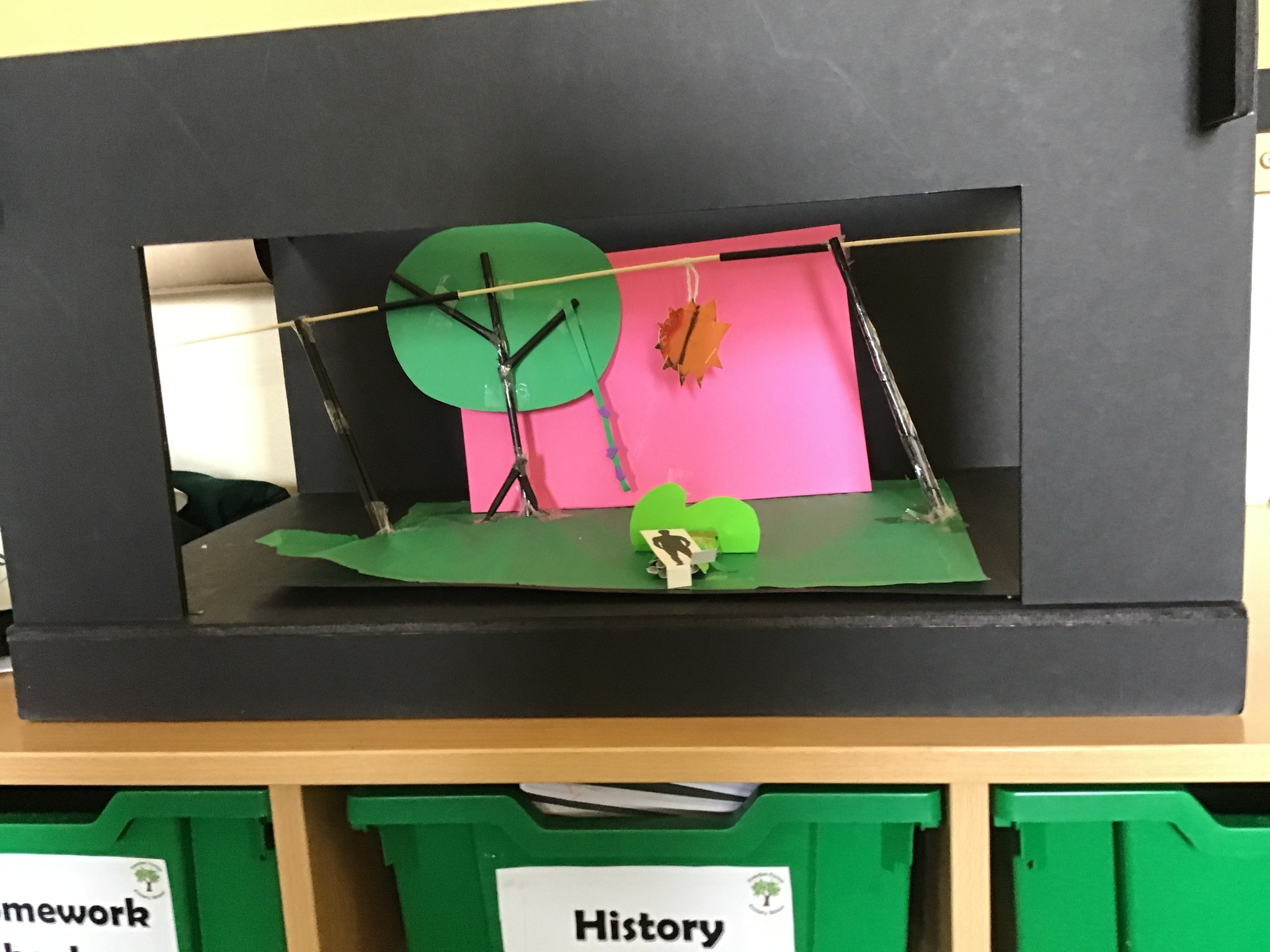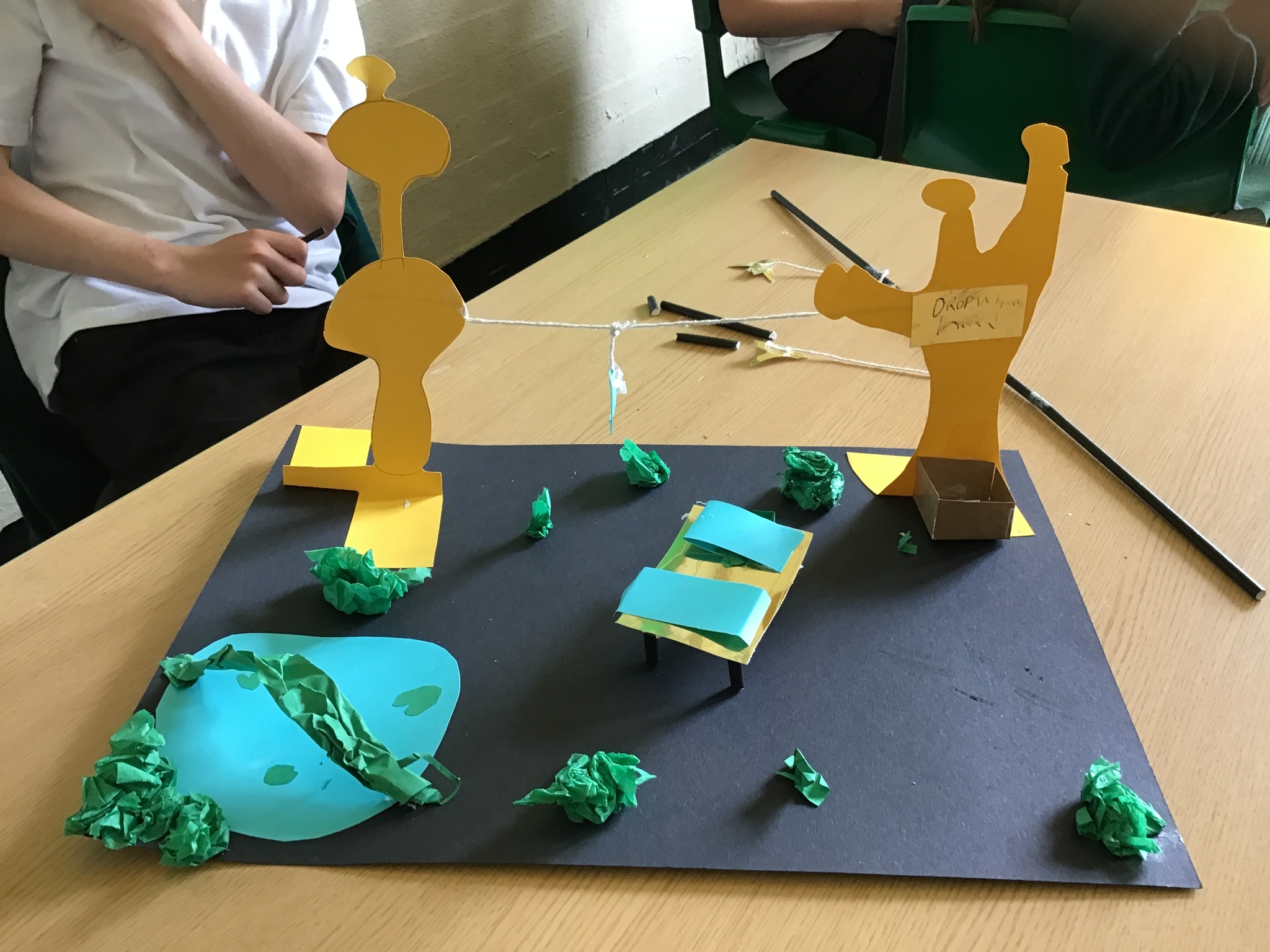 Then each class enjoyed a workshop where the children created something themselves. EYFS made some wriggly, jiggly snakes, Y1, Y2 and Y3 made foil and tissue birds and Y4 made some fabulous flapping bats. Y5 and Y6 used Shakespeare as their inspiration to design some sets for staging his plays.