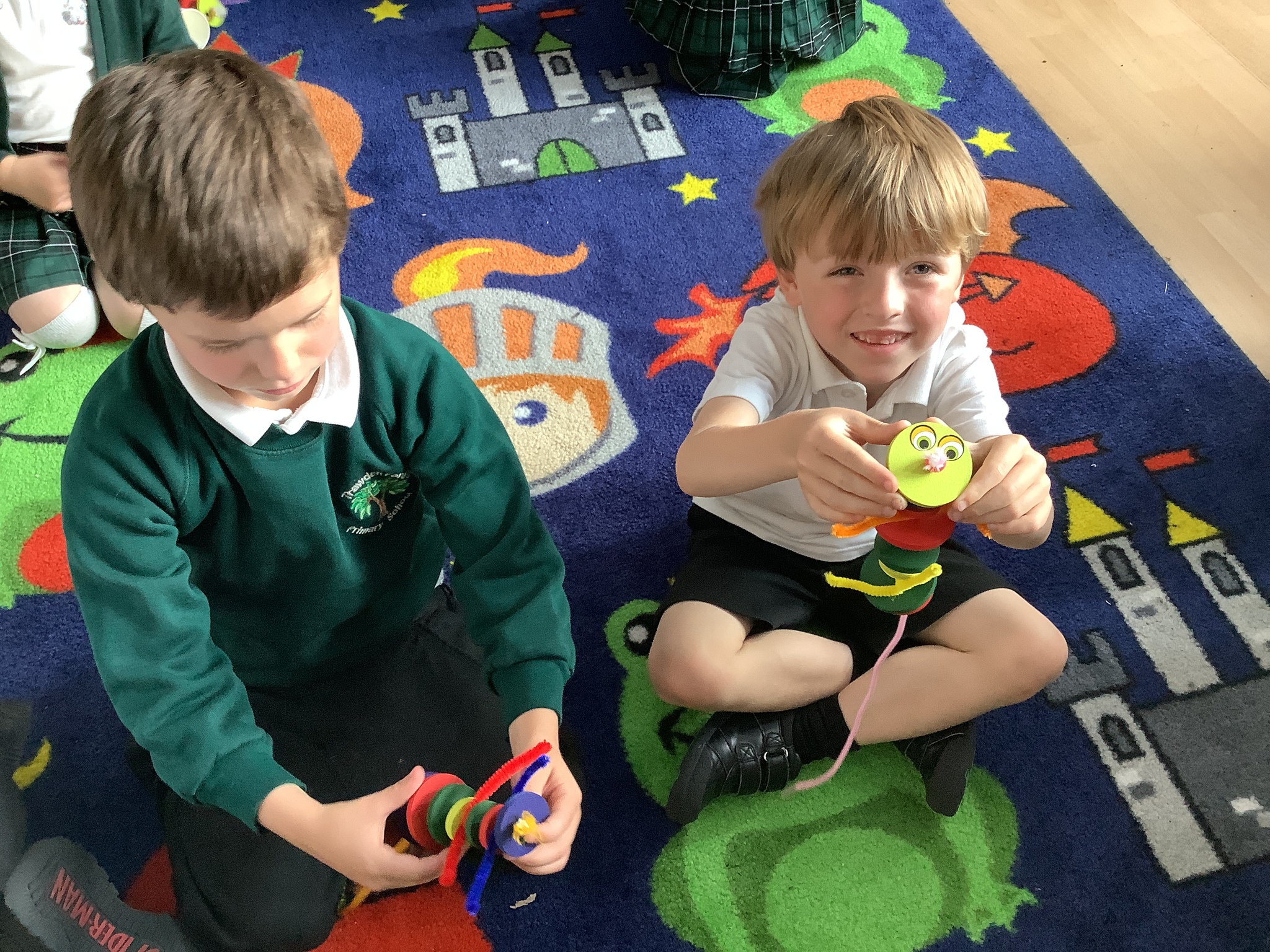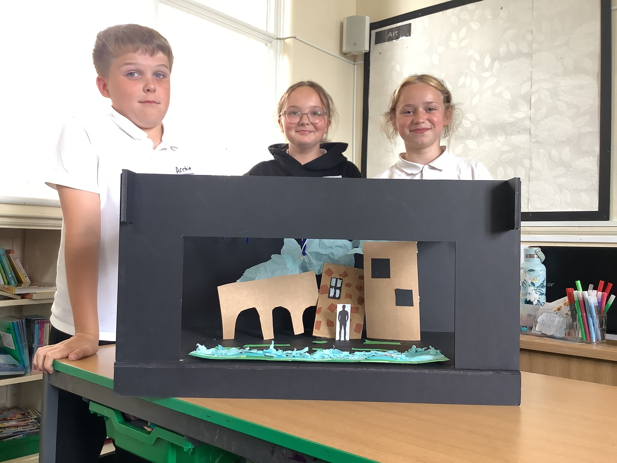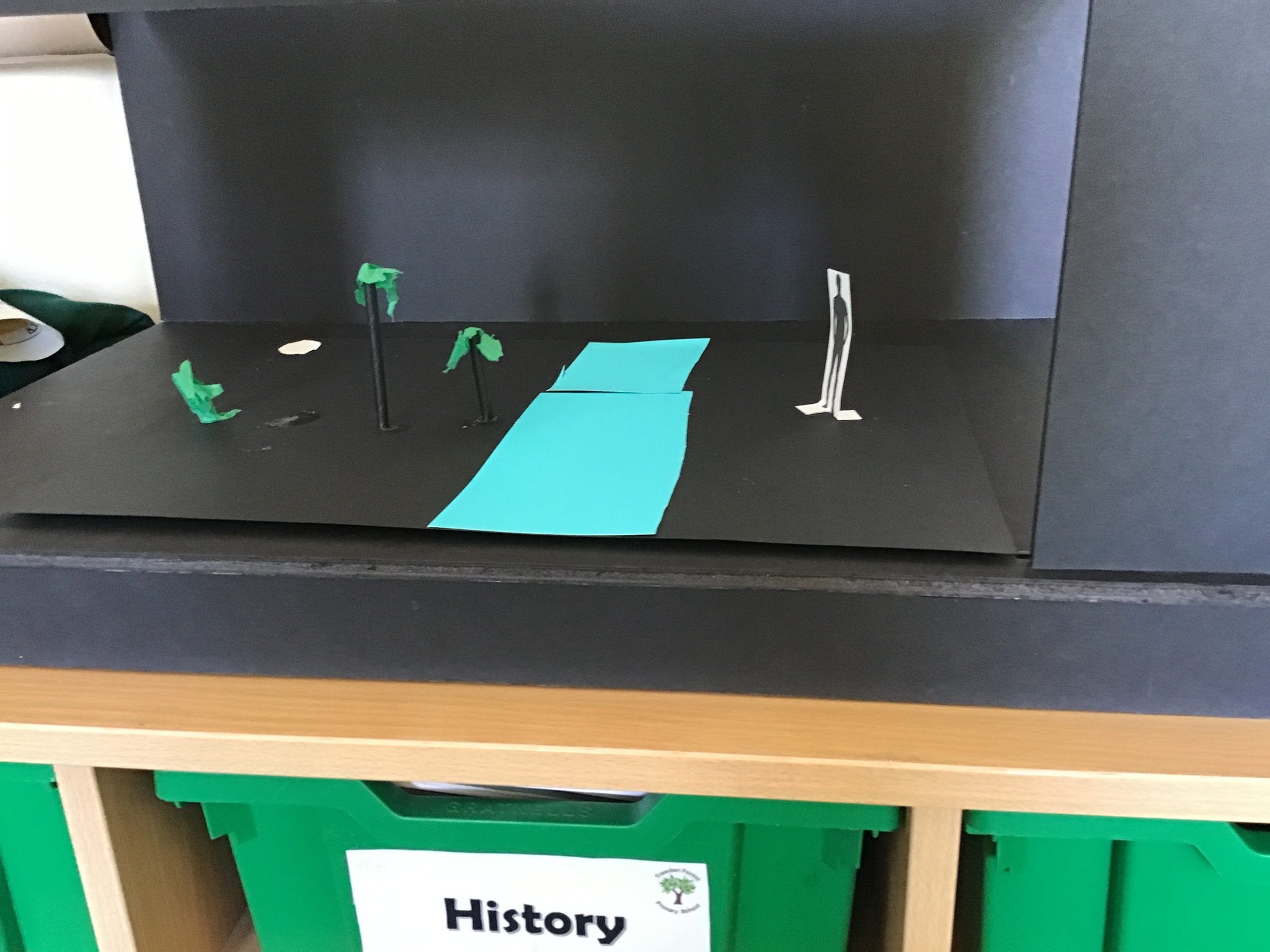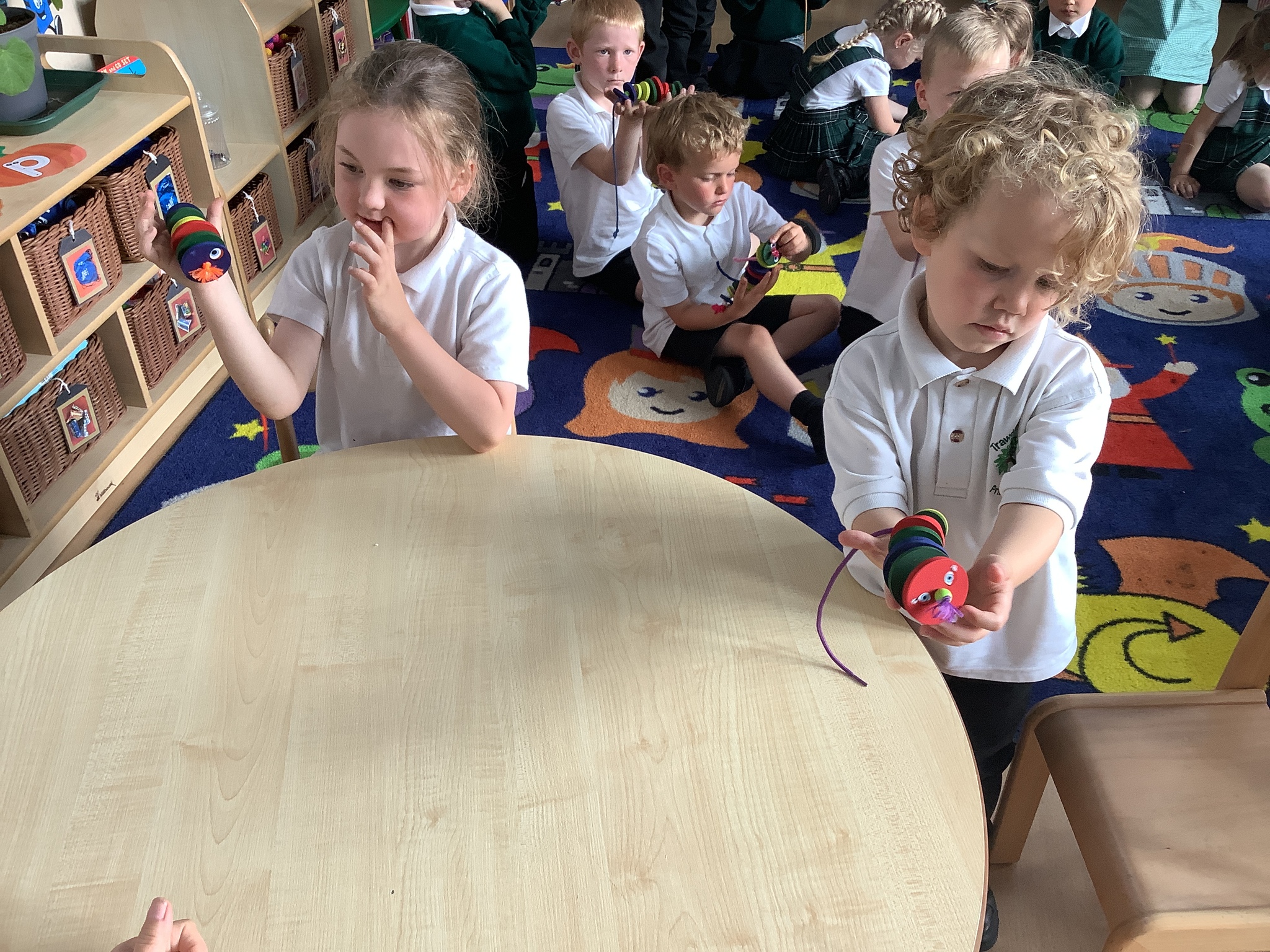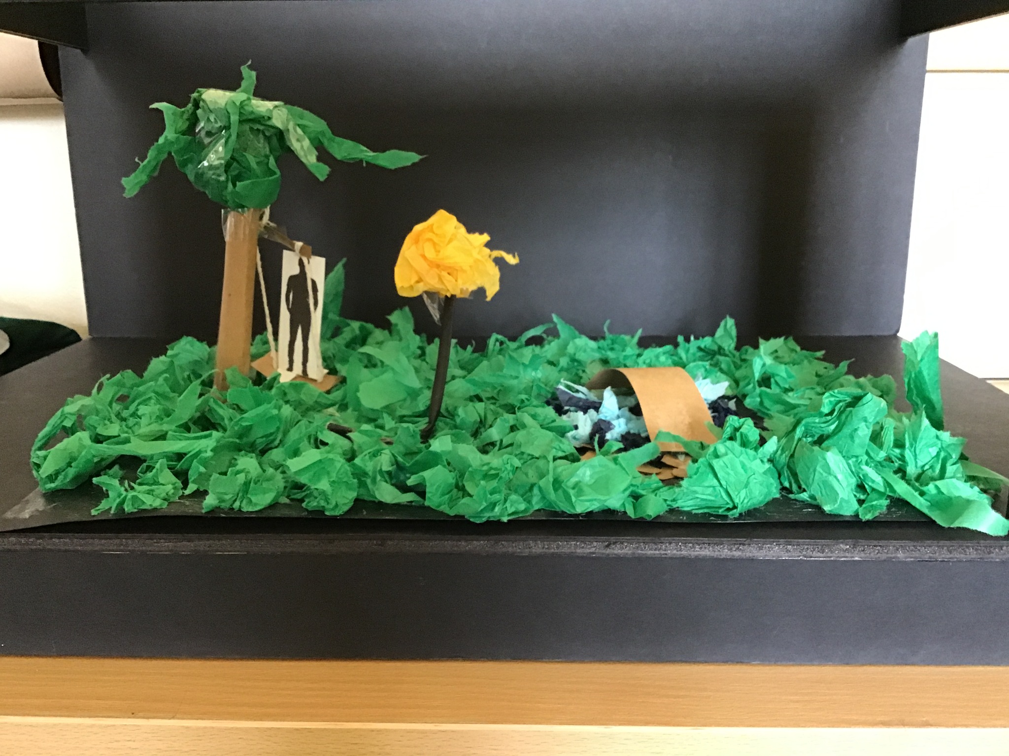 Then each class enjoyed a workshop where the children created something themselves. EYFS made some wriggly, jiggly snakes, Y1, Y2 and Y3 made foil and tissue birds and Y4 made some fabulous flapping bats. Y5 and Y6 used Shakespeare as their inspiration to design some sets for staging his plays.