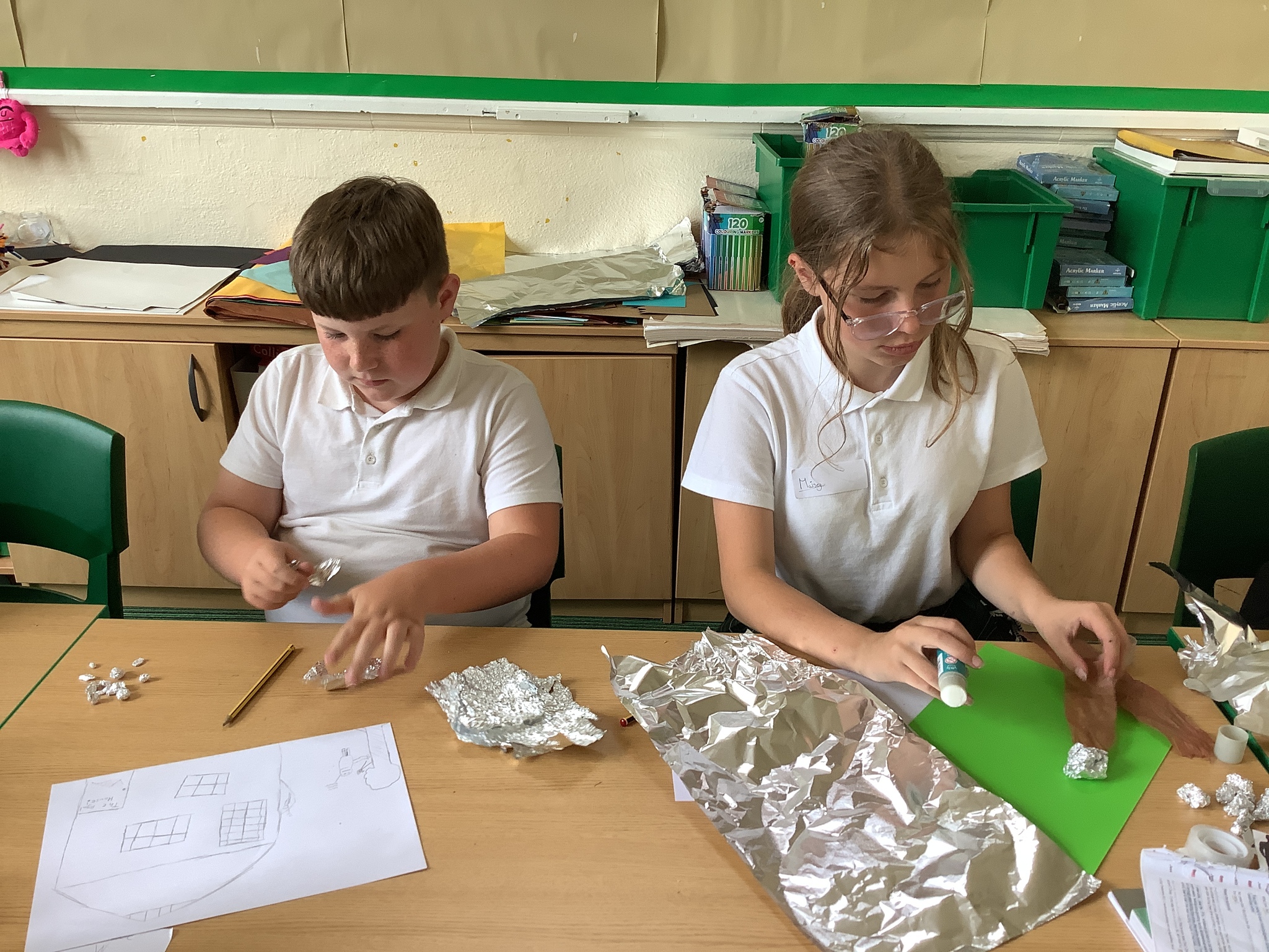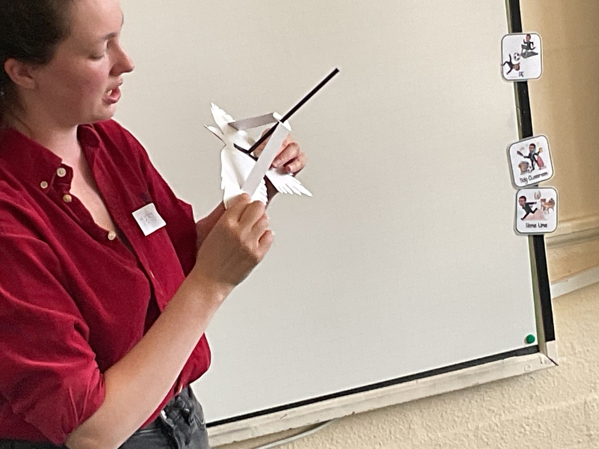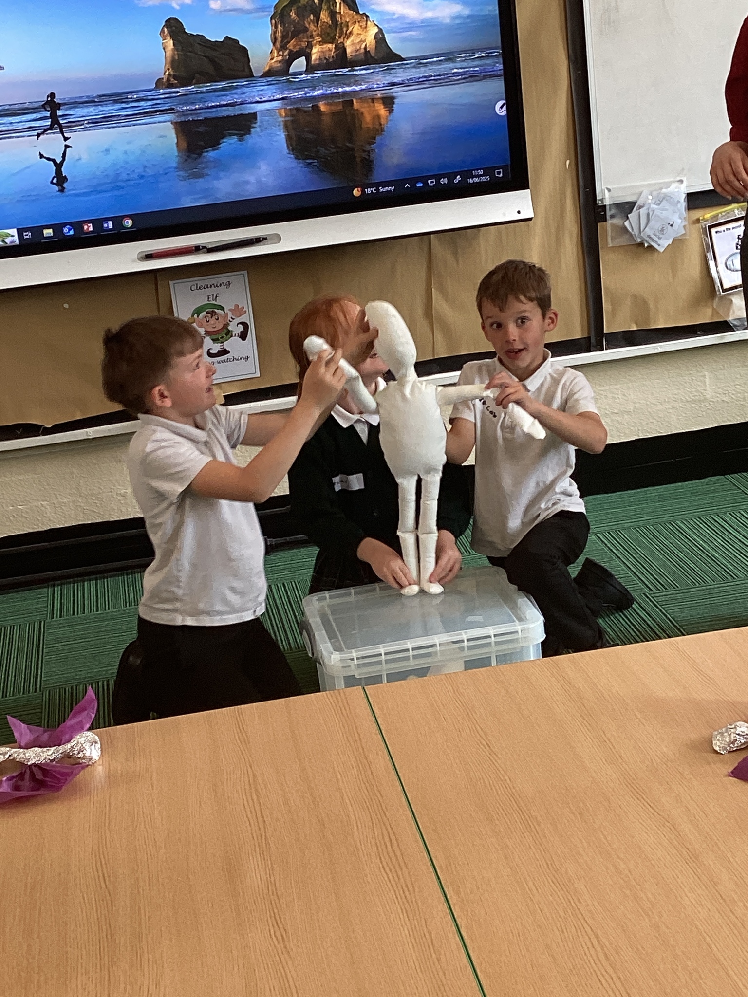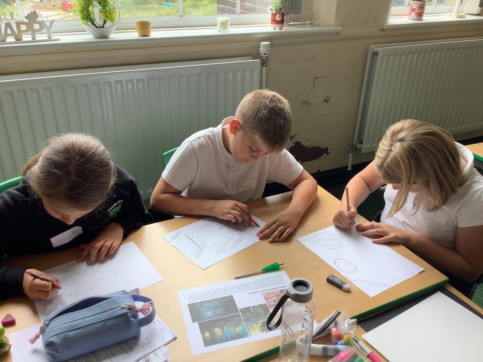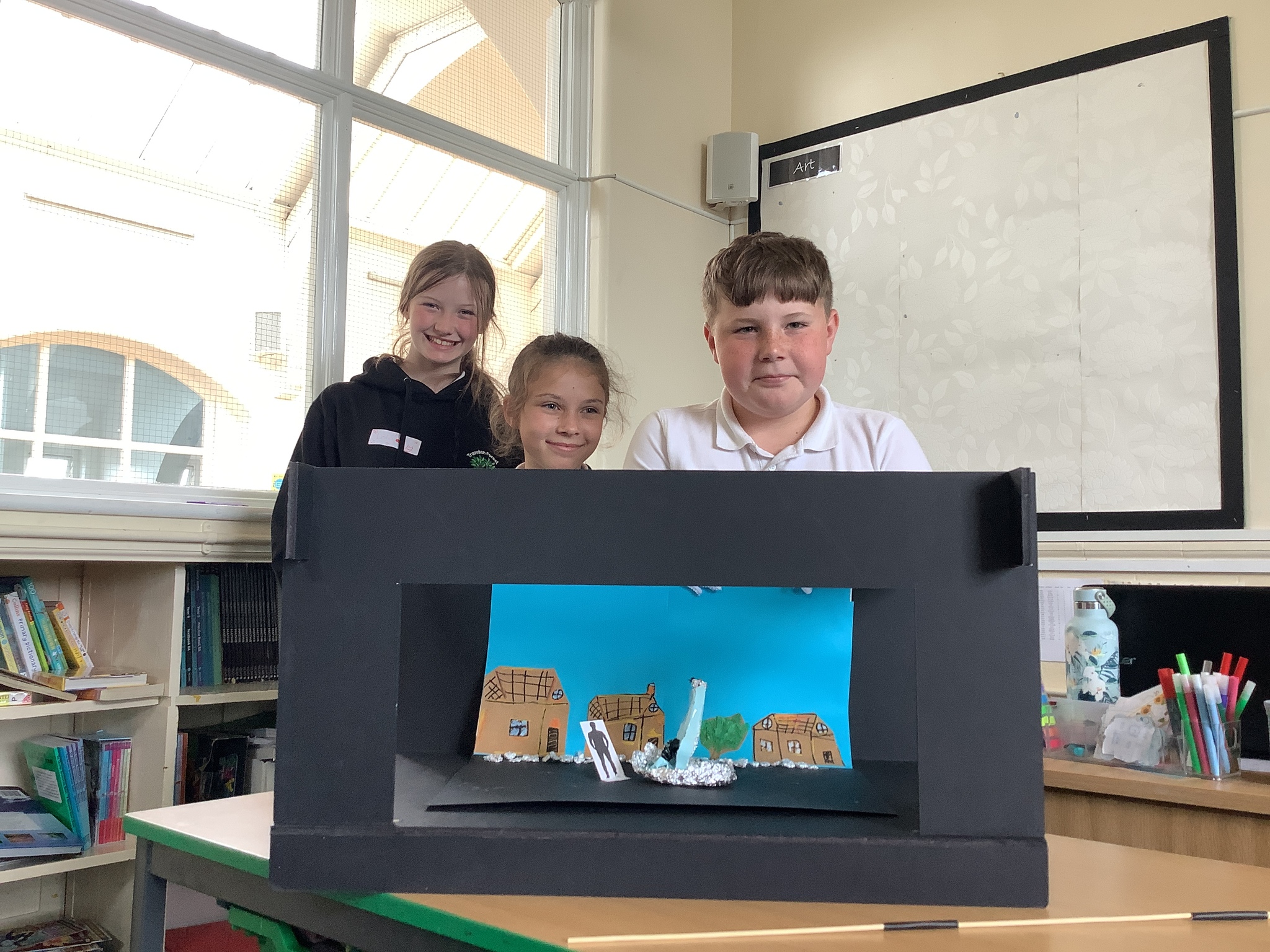 Then each class enjoyed a workshop where the children created something themselves. EYFS made some wriggly, jiggly snakes, Y1, Y2 and Y3 made foil and tissue birds and Y4 made some fabulous flapping bats. Y5 and Y6 used Shakespeare as their inspiration to design some sets for staging his plays.