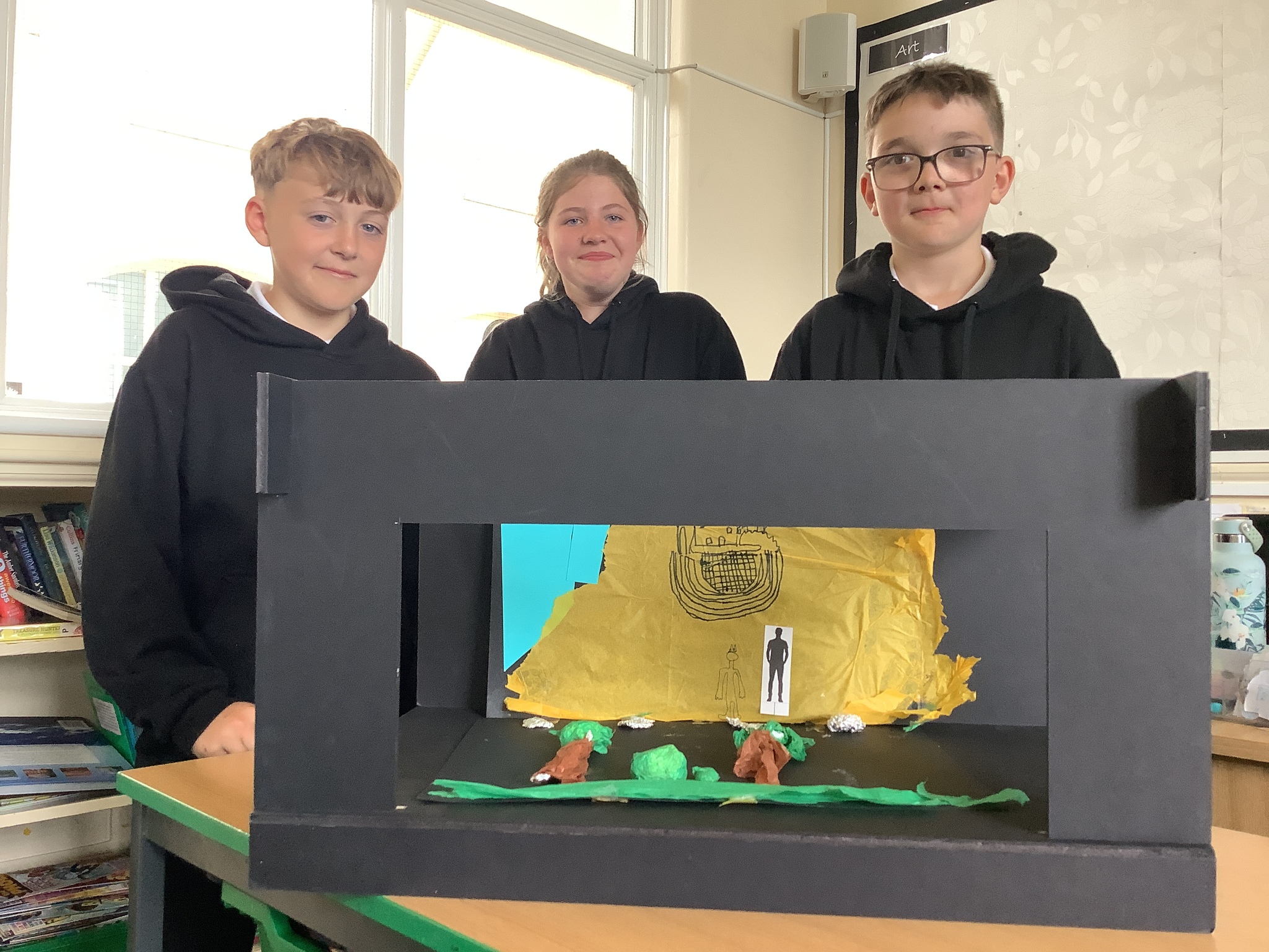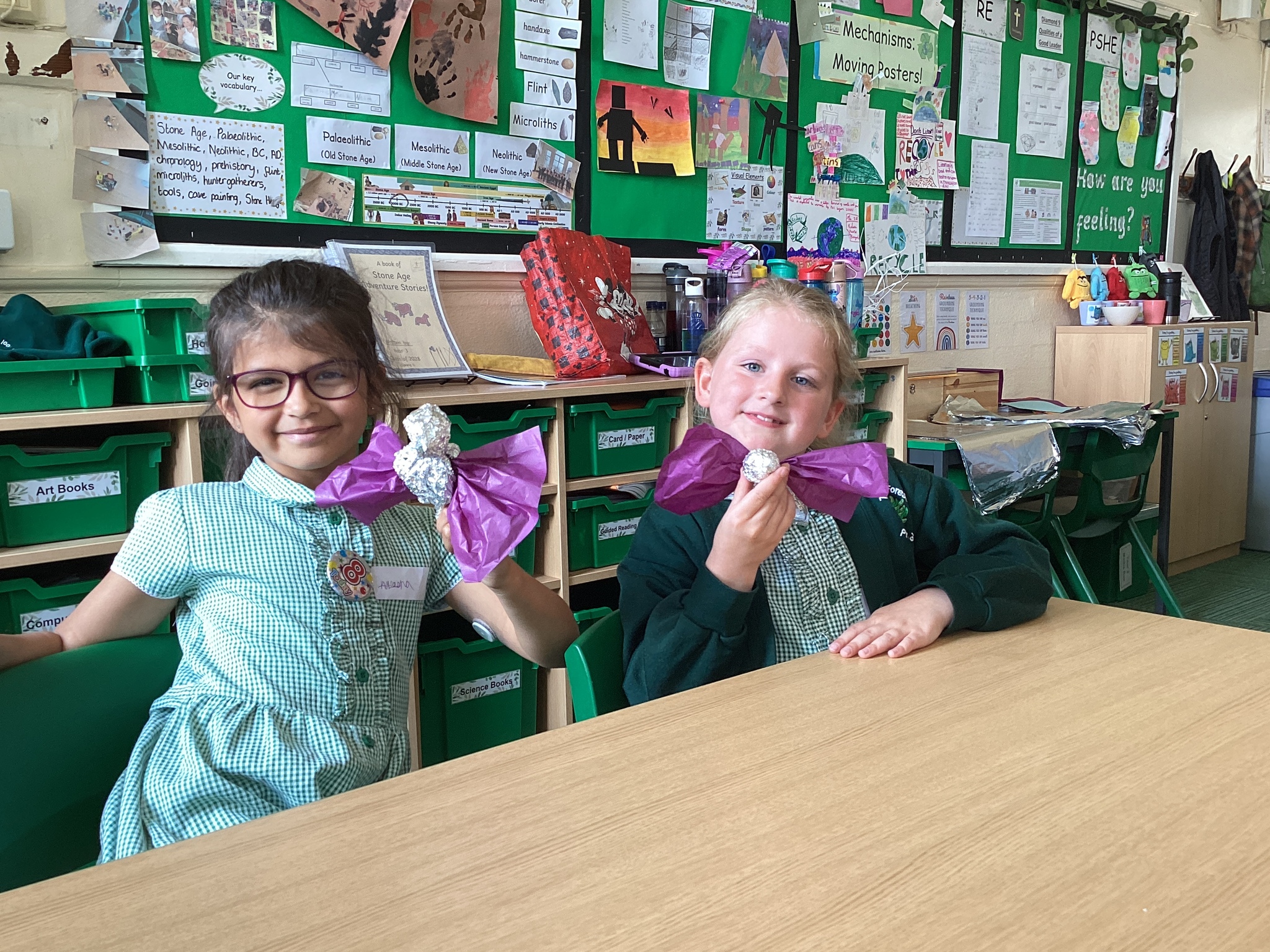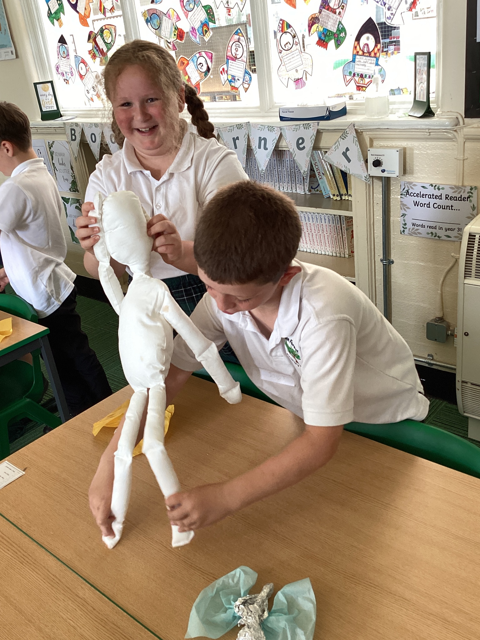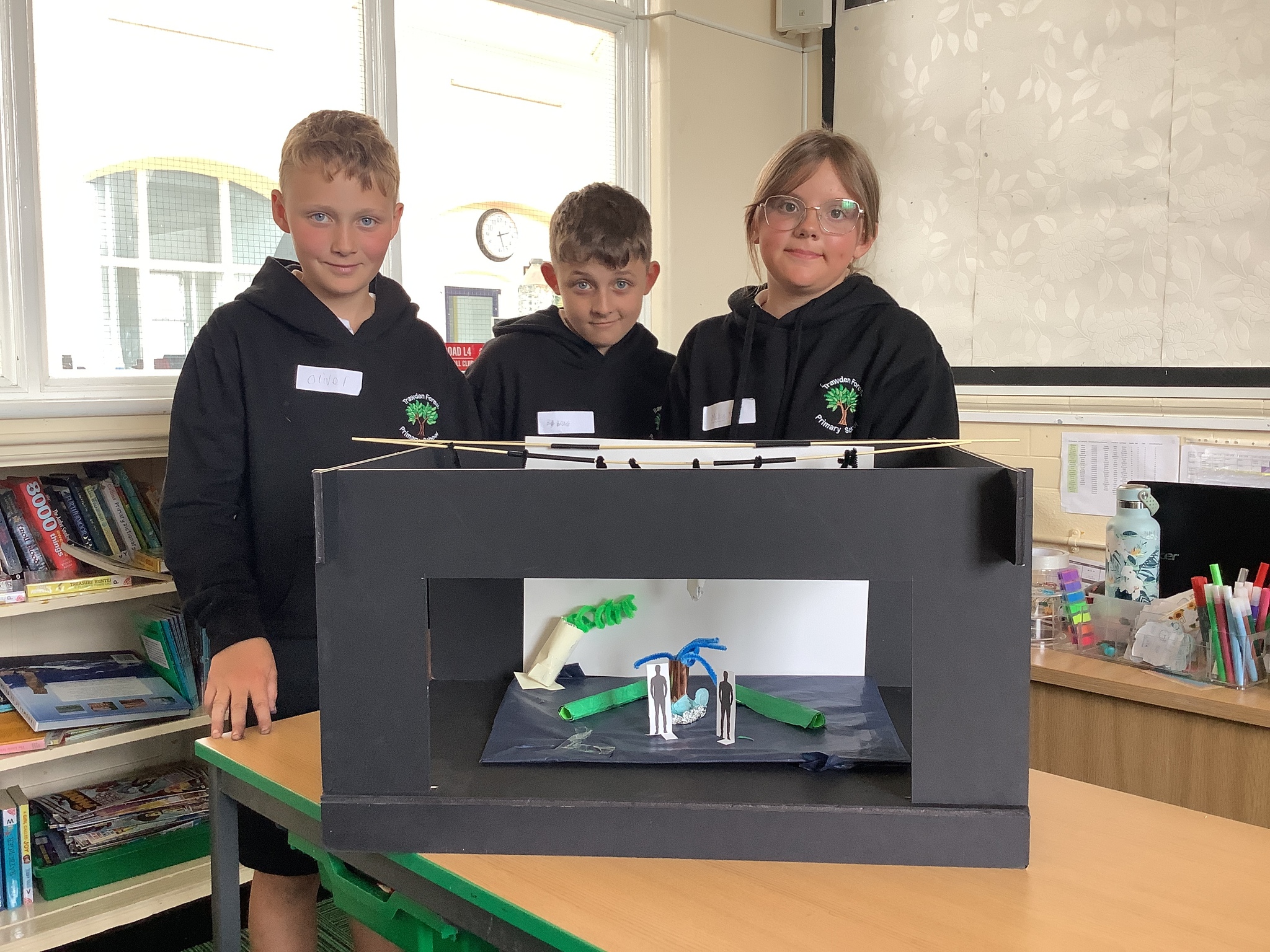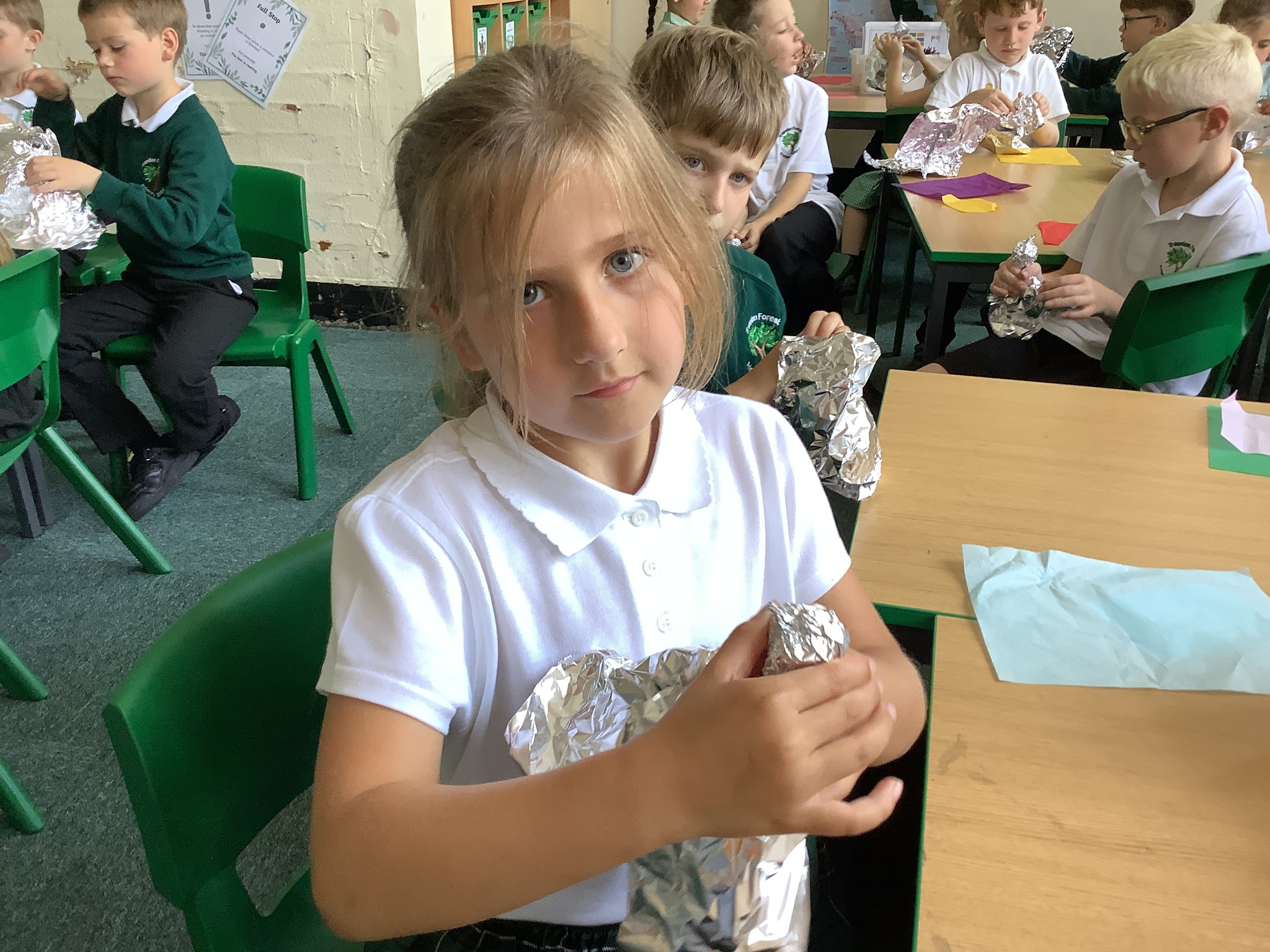 Then each class enjoyed a workshop where the children created something themselves. EYFS made some wriggly, jiggly snakes, Y1, Y2 and Y3 made foil and tissue birds and Y4 made some fabulous flapping bats. Y5 and Y6 used Shakespeare as their inspiration to design some sets for staging his plays.