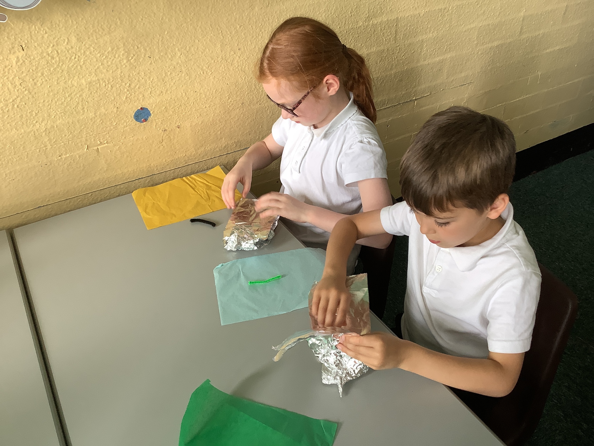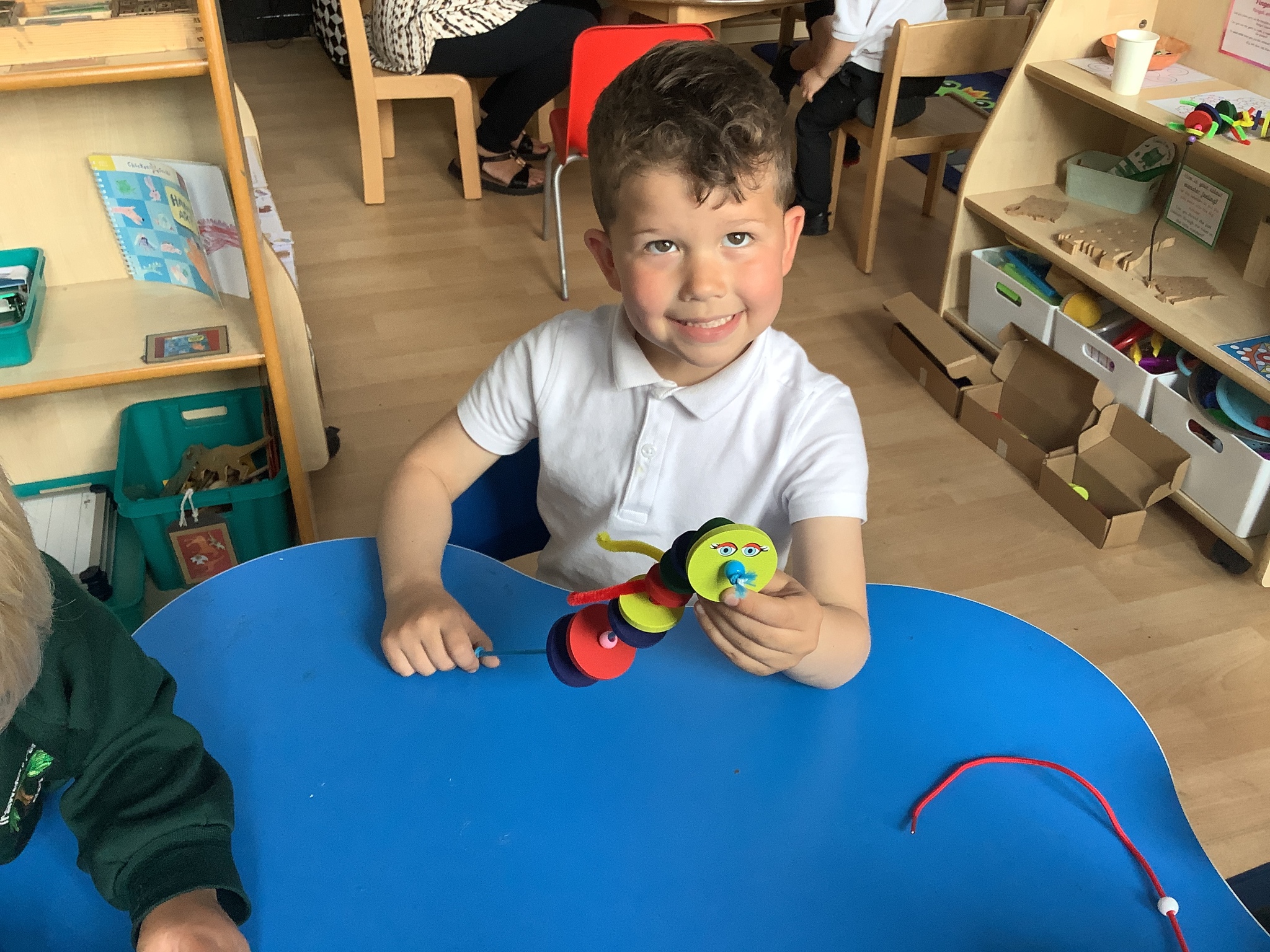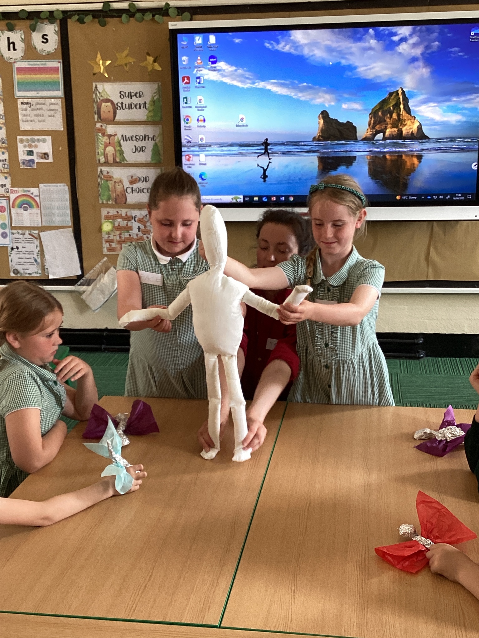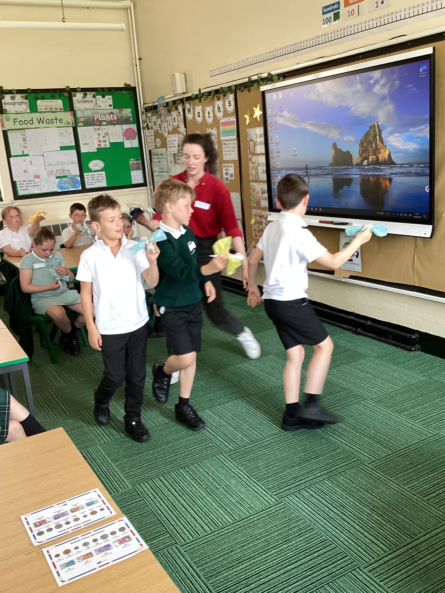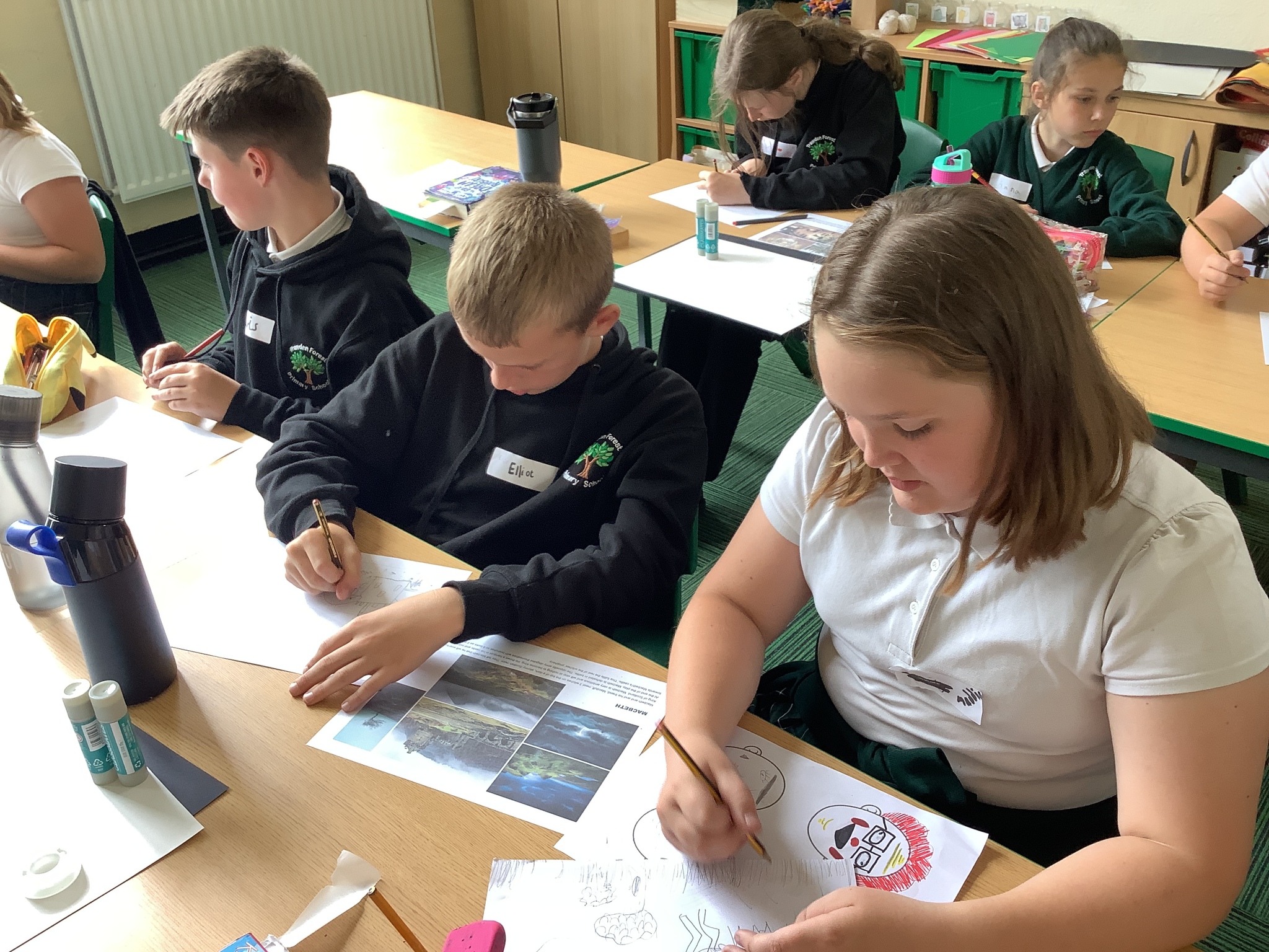Then each class enjoyed a workshop where the children created something themselves. EYFS made some wriggly, jiggly snakes, Y1, Y2 and Y3 made foil and tissue birds and Y4 made some fabulous flapping bats. Y5 and Y6 used Shakespeare as their inspiration to design some sets for staging his plays.