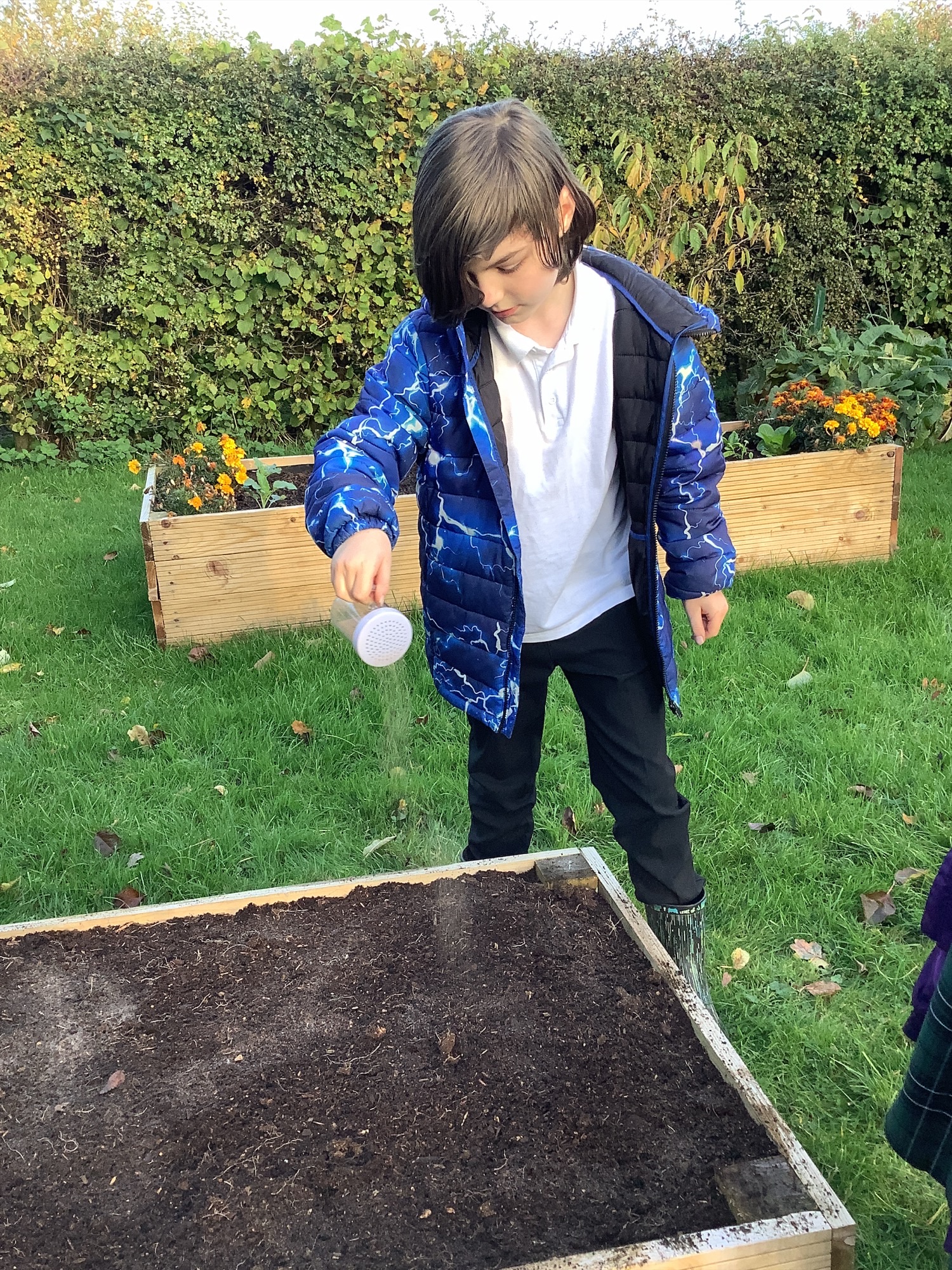 The children helped prepare and sow our mixed poppy bed, learning that autumn is the perfect time to plant poppy seeds — the winter cold helps “wake them up” from dormancy so they’re ready to germinate in spring.