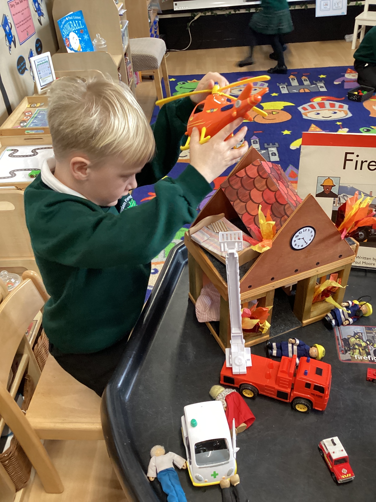 We talked about what firefighters wear and why their equipment is so important. Through role play, small world play and creative activities, the children pretended to be firefighters, responding to emergencies and working together to put out fires.