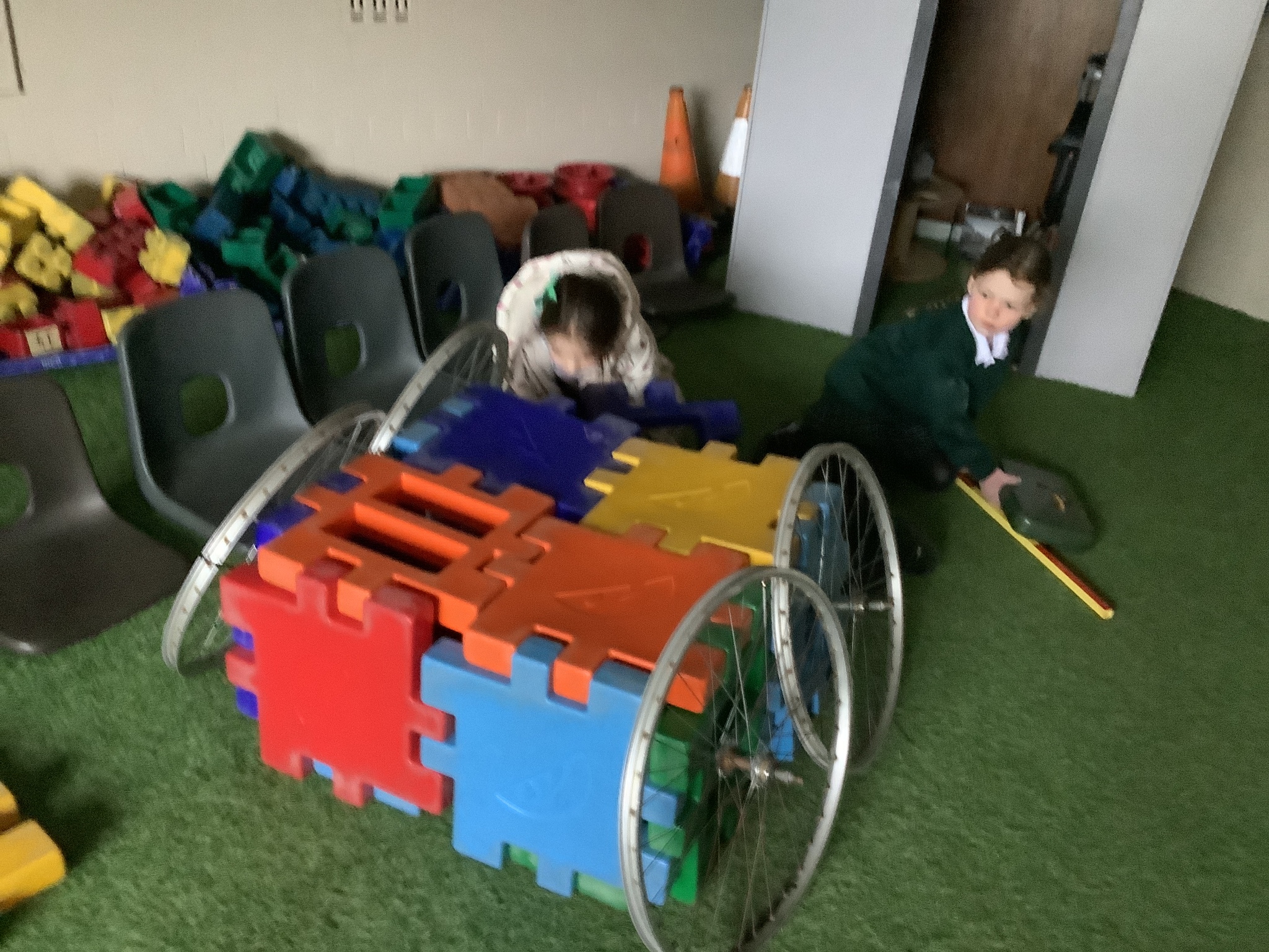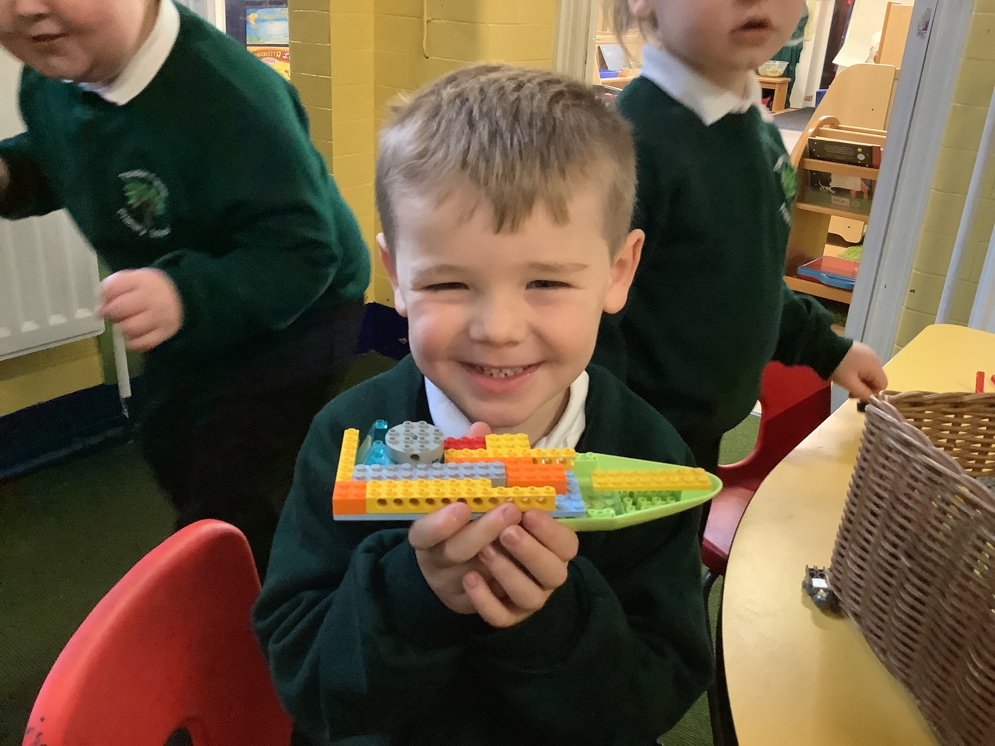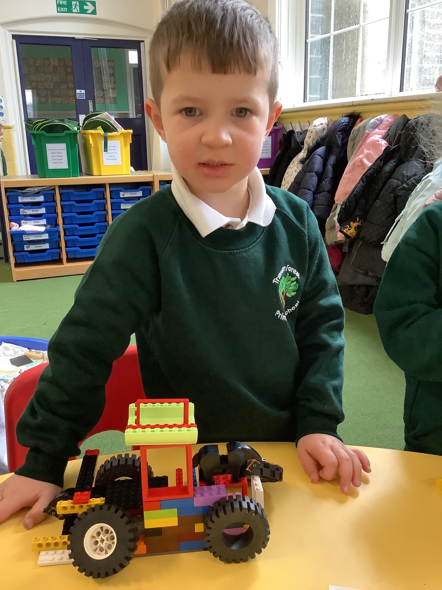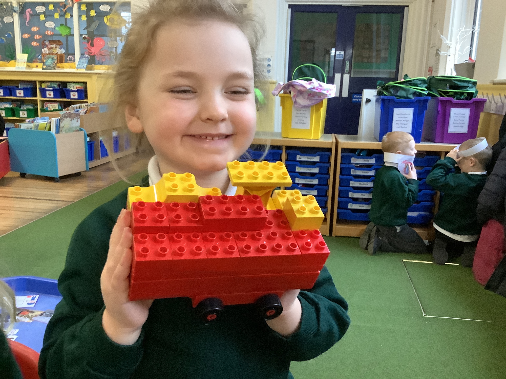 In the construction areas, the children designed and created their own emergency vehicles using LEGO Duplo and a range of construction resources. They confidently talked about their ideas and choices as they built, showing imagination and problem-solving skills.