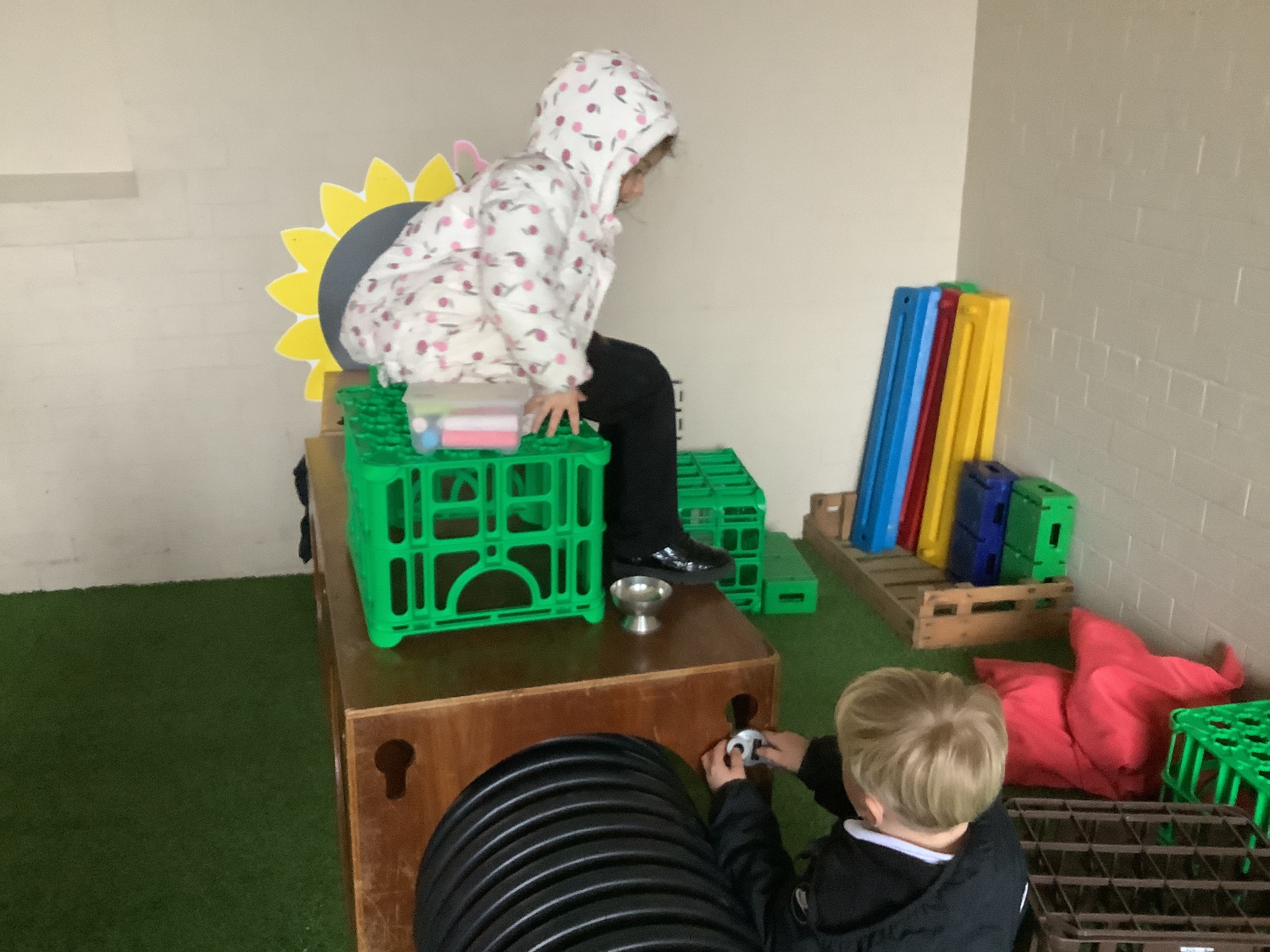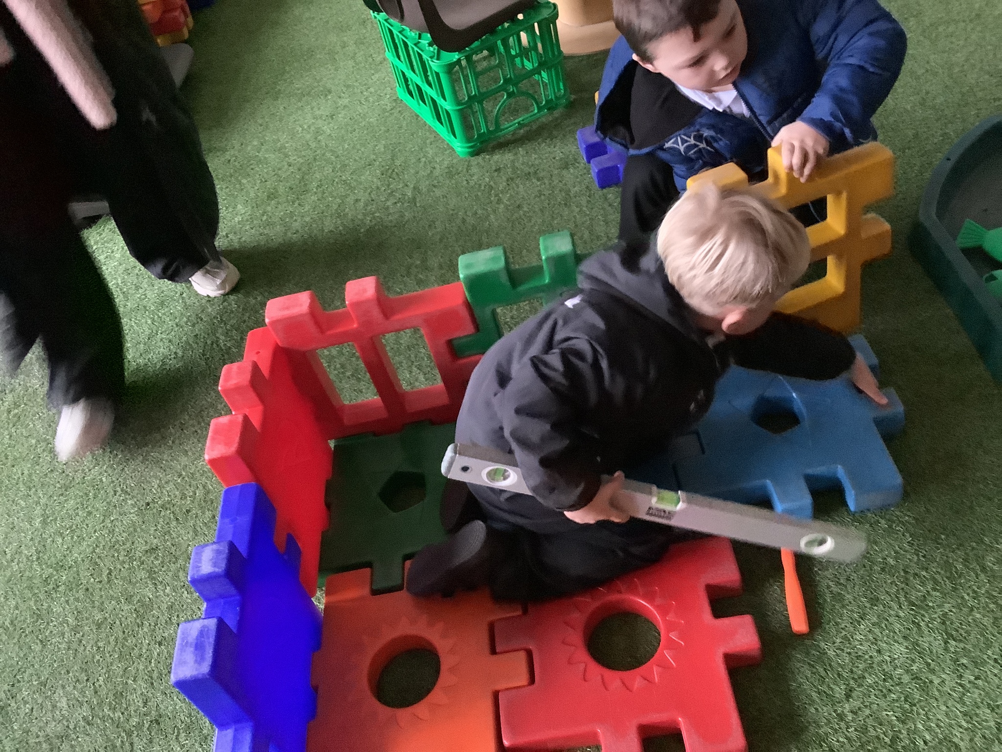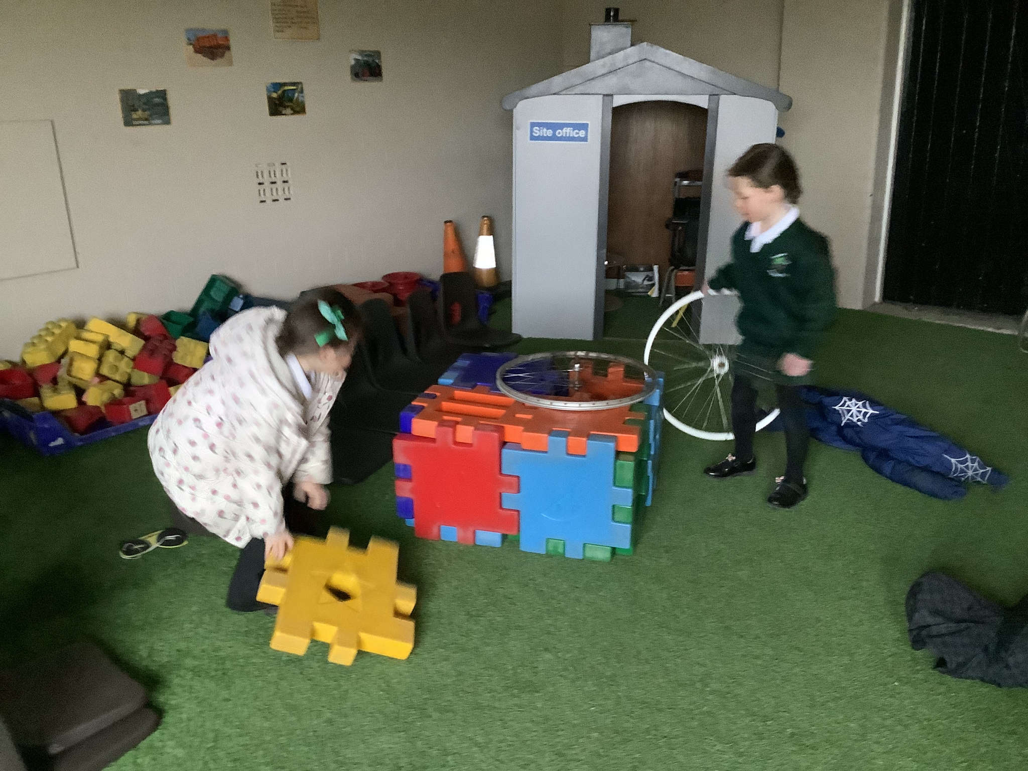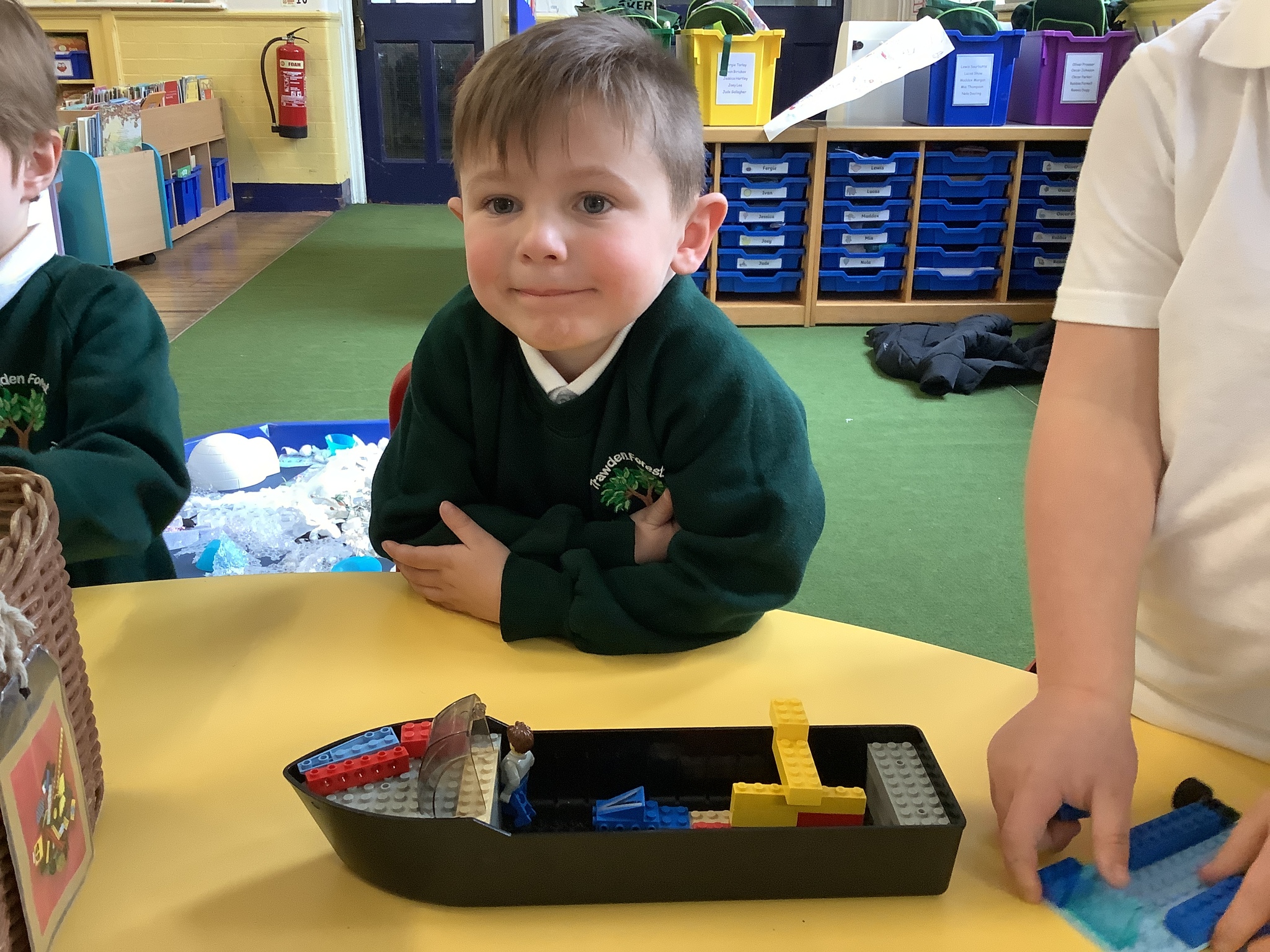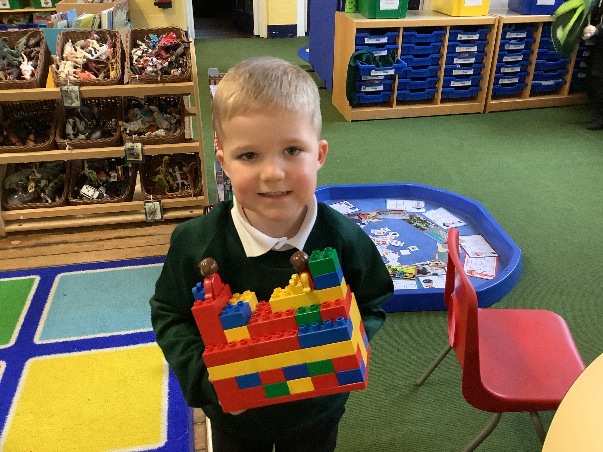 In the construction areas, the children designed and created their own emergency vehicles using LEGO Duplo and a range of construction resources. They confidently talked about their ideas and choices as they built, showing imagination and problem-solving skills.