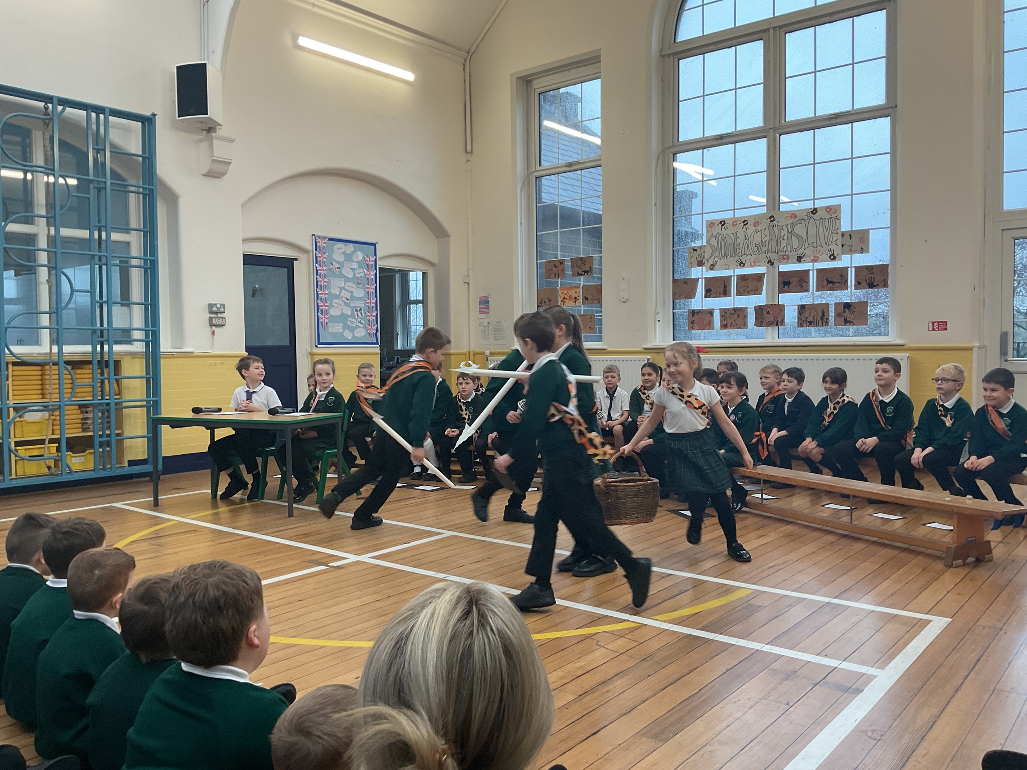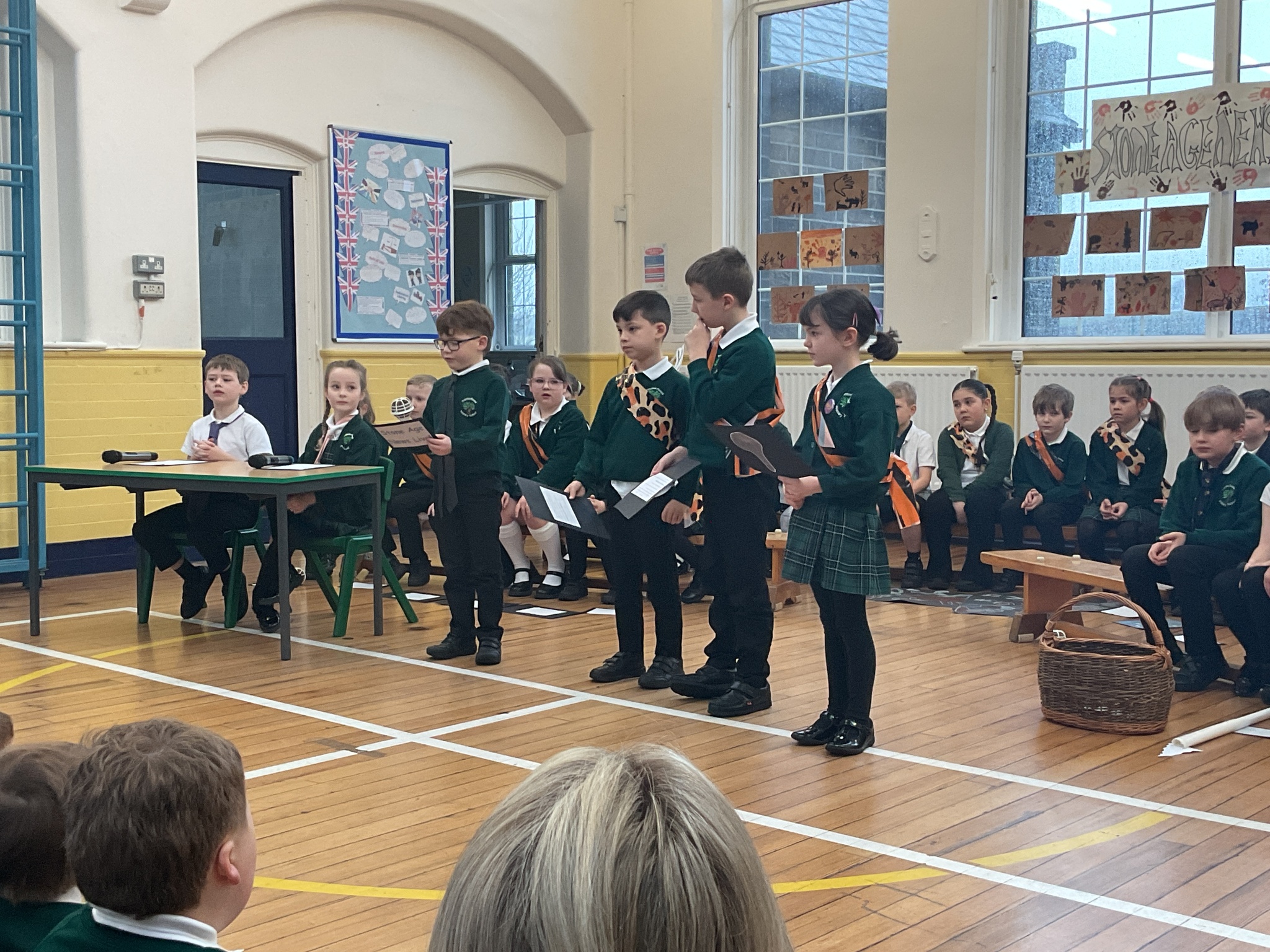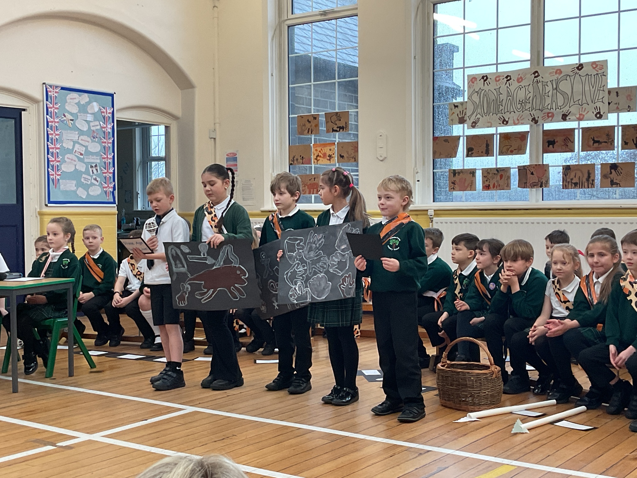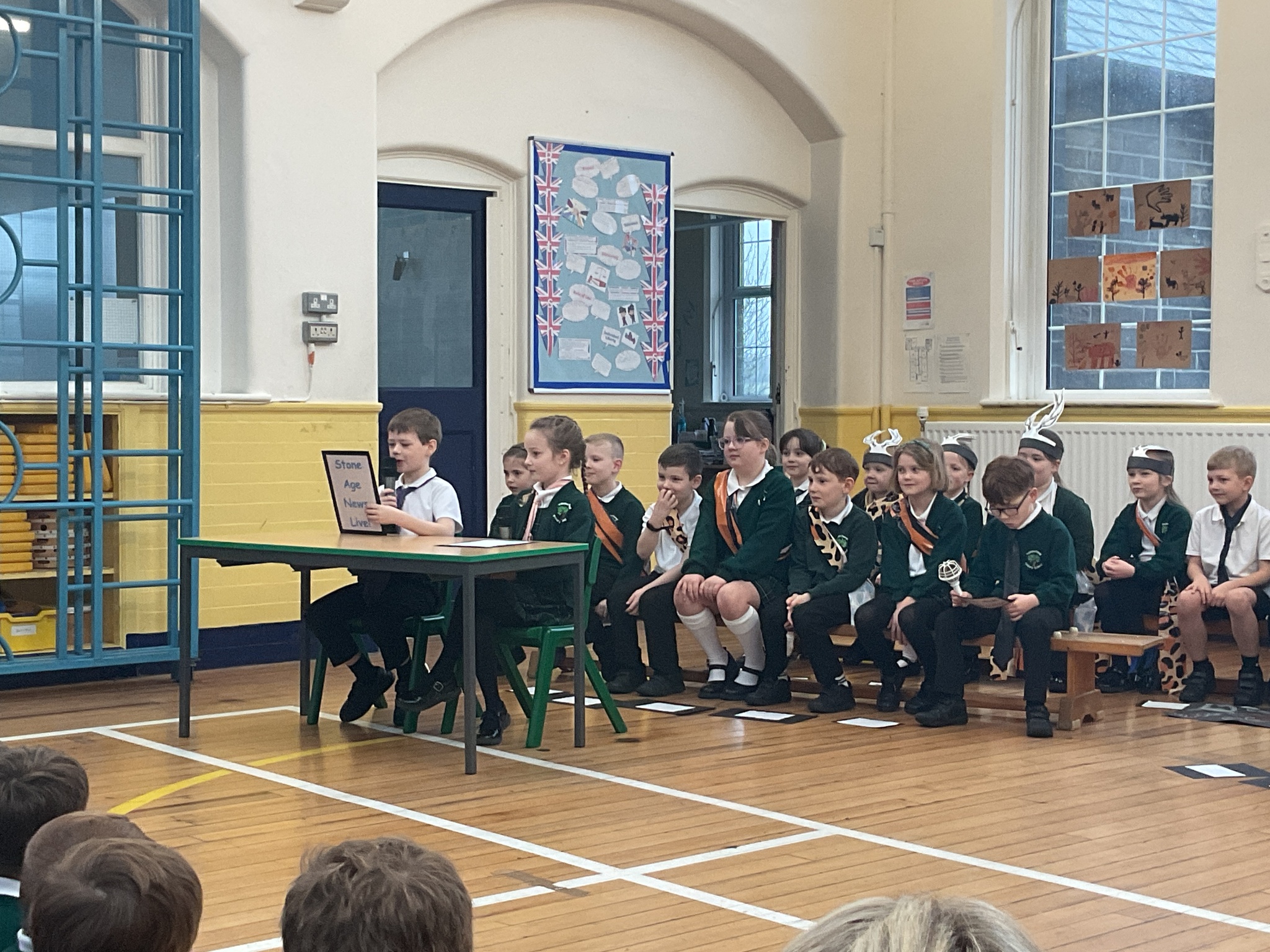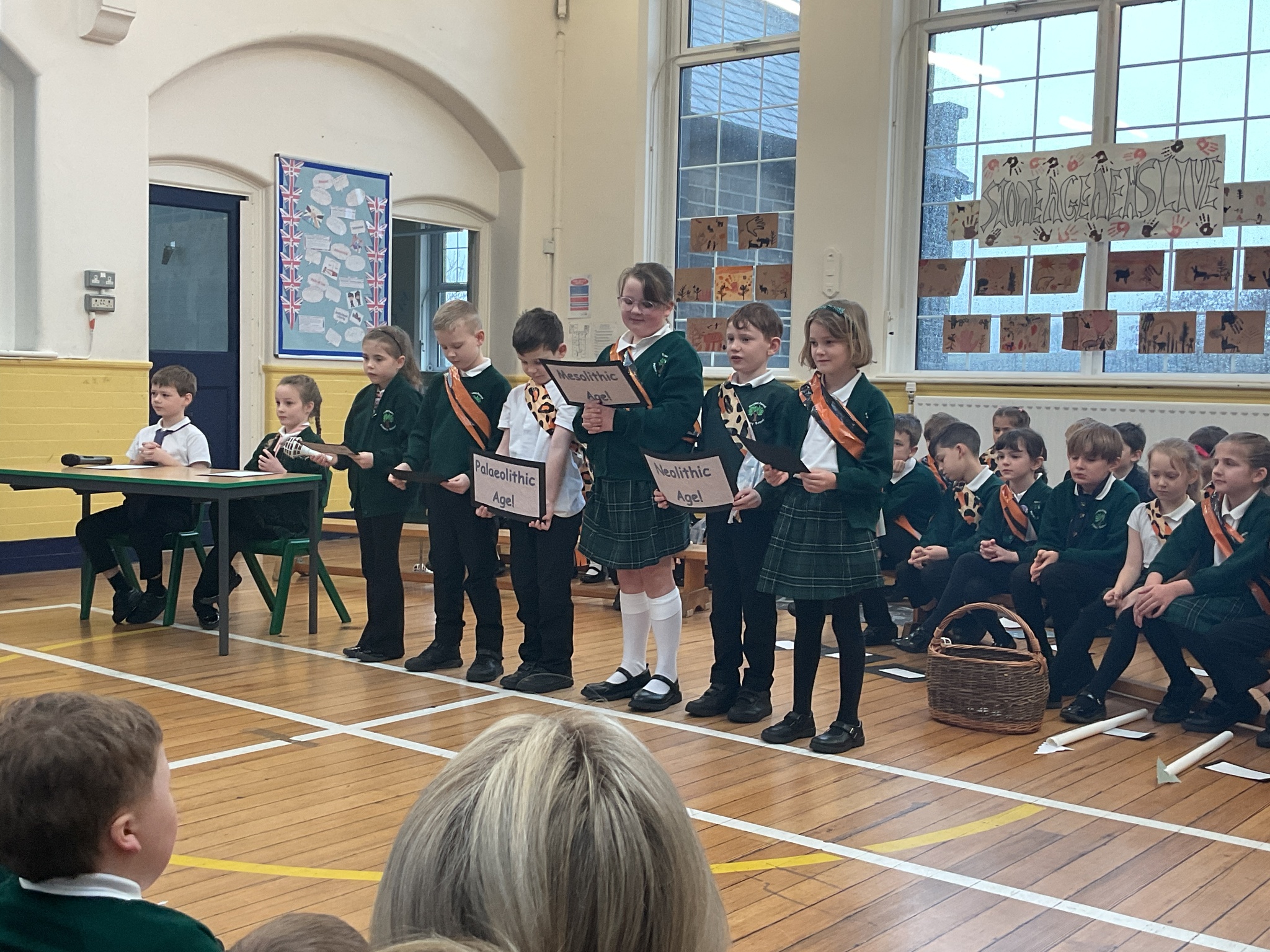 This morning, Year 3 took the whole school back in time to the Stone Age with their class assembly.